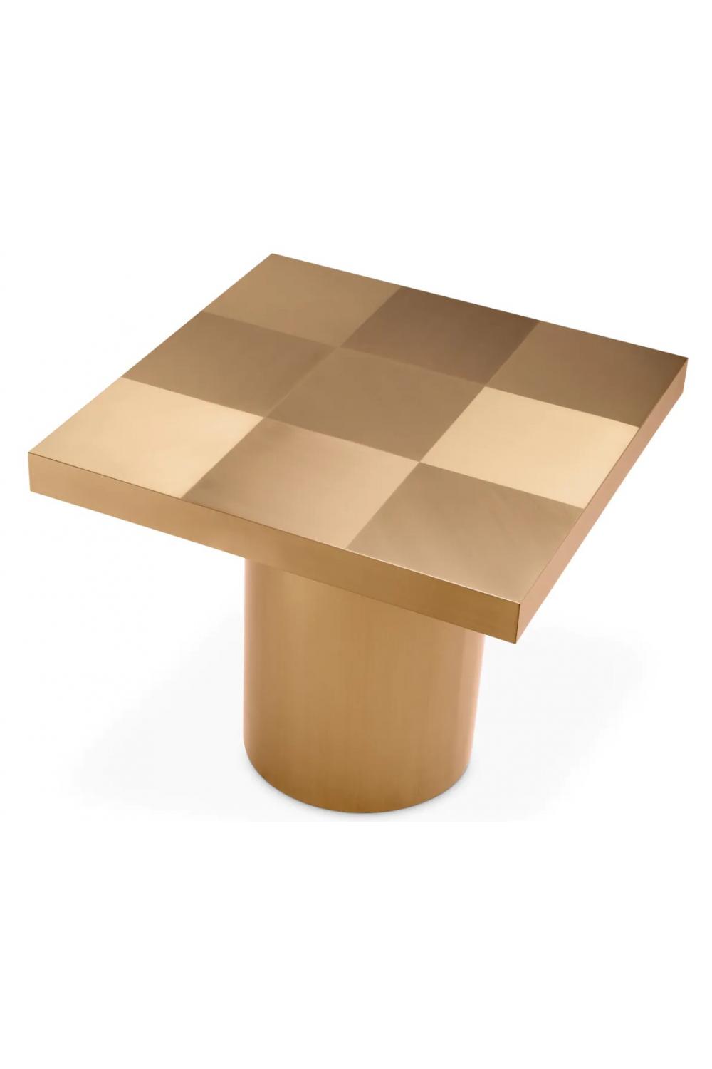 Luxury Brass Finish Rectangular Side Table with Designer Checkered Surface crafted for premium interiors