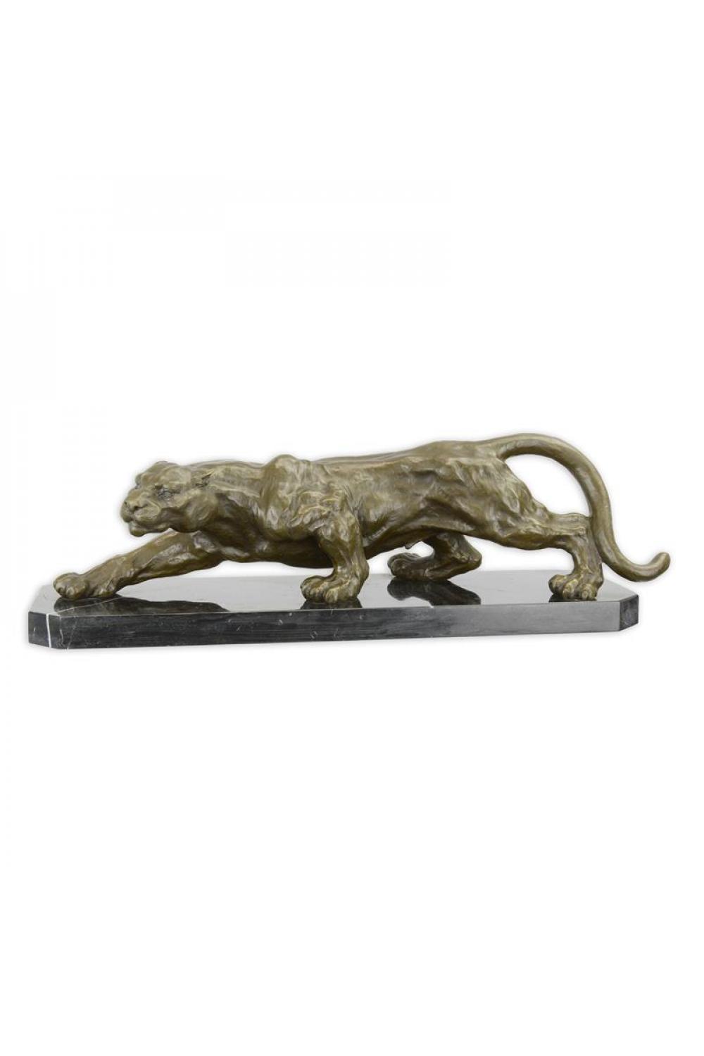 The Luxury Bronze Crouching Panther Sculpture captures the silent intensity of a predator in motionless focus. Its elongated physique, stretched stance, and finely modelled musculature express a perfect balance between tension and elegance. The warm bronze finish reveals layered highlights that enhance its sculptural depth, adding character to this striking piece of sculpture en bronze created with remarkable finesse.