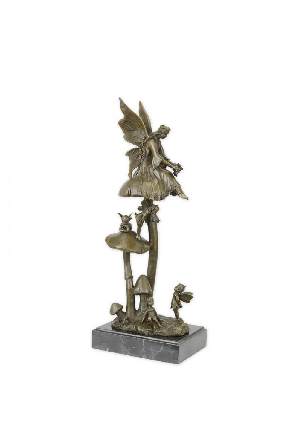 The Luxury Bronze Fairies Resting on Mushroom Sculpture captures a serene, magical moment as a group of fairies gently gathers atop a sculpted forest mushroom. Their soft postures, flowing details, and expressive wings create a dreamlike presence that celebrates imagination and nature-inspired artistry. The warm bronze finish introduces subtle highlights, reflecting the refinement associated with masterful bronze sculpture craftsmanship.
