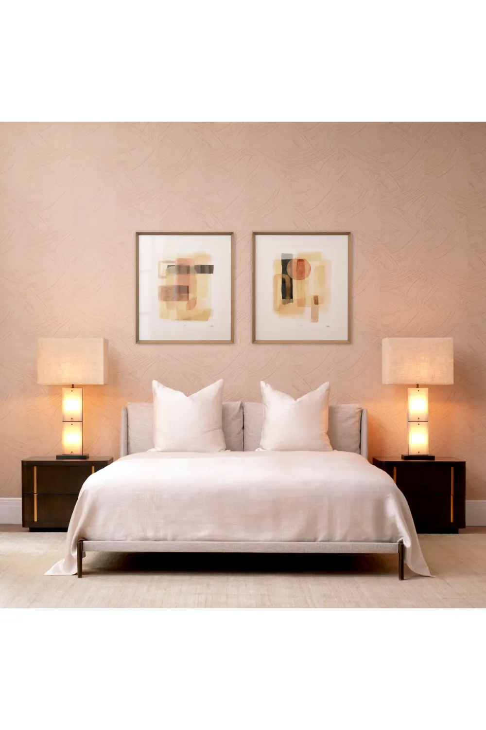 This luxury bed frame features textured Durini natural upholstery paired with a sophisticated medium bronze finish, creating an elegant statement piece that elevates any refined bedroom. Perfect for luxury homes seeking comfort and timeless design.