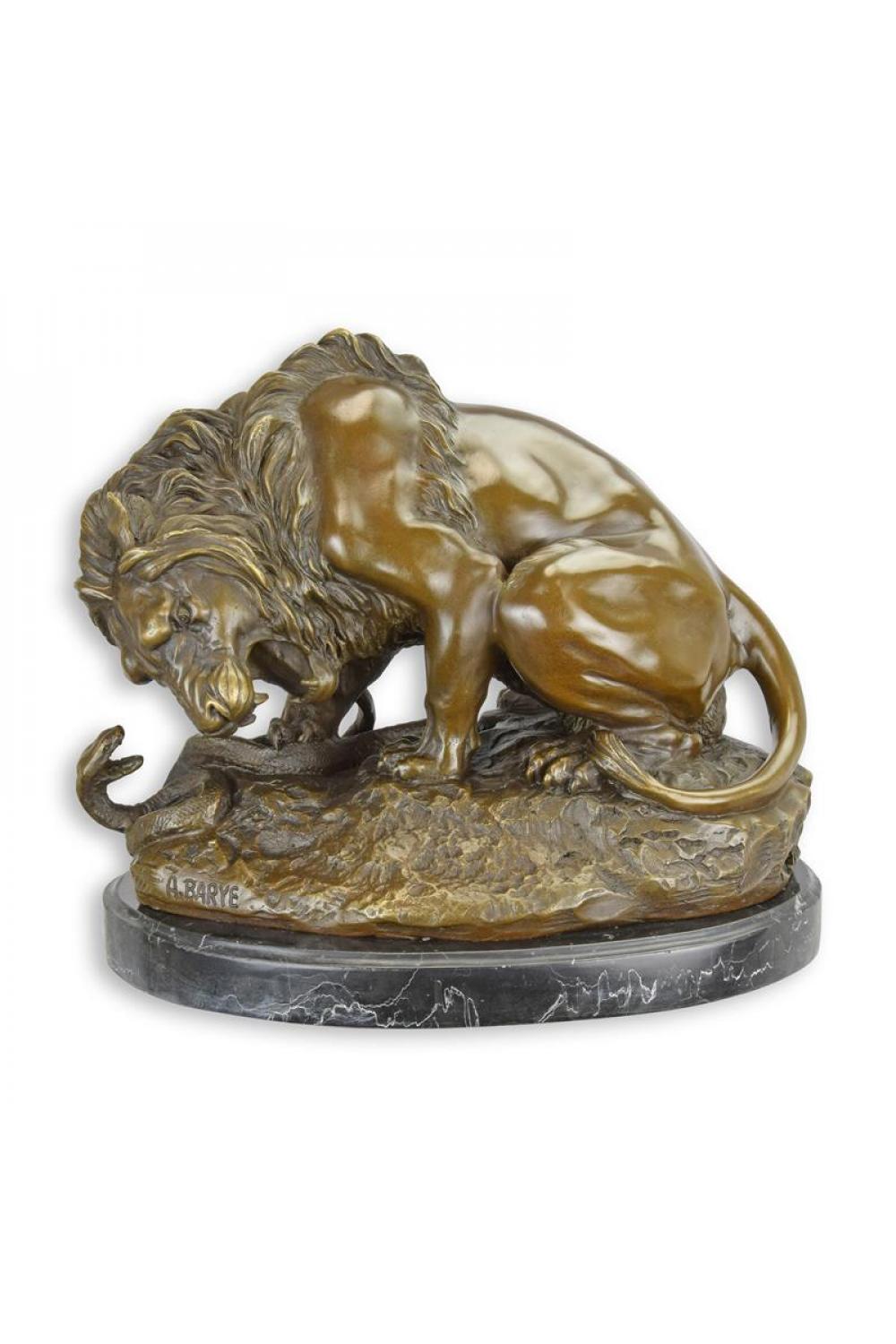 Home > Sculptures & Statues > Bronze Sculptures > Luxury Bronze Lion and Serpent Sculpture – 24 CM
