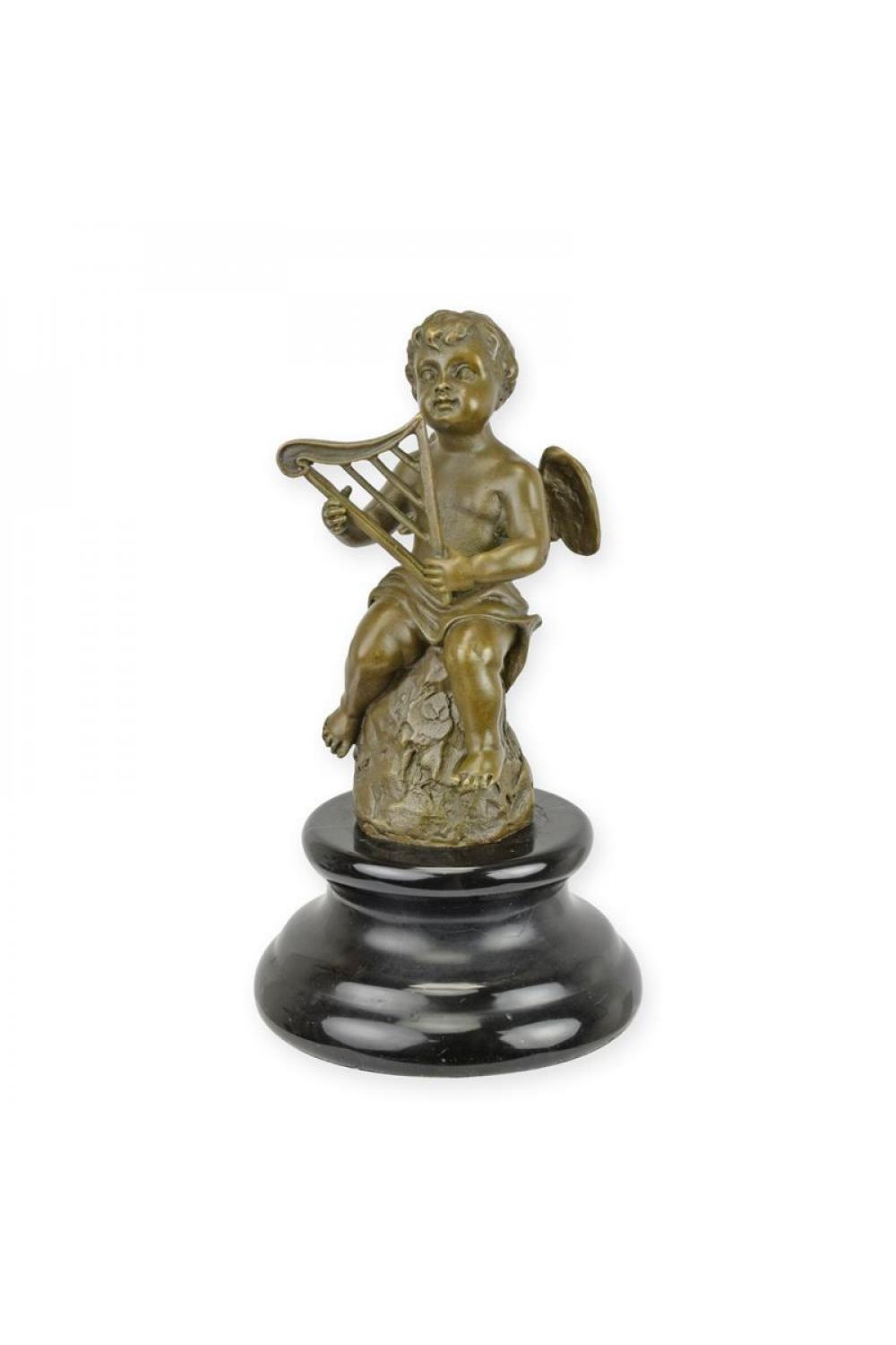 Home > Sculptures & Statues > Classic Sculptures > Luxury Bronze Putto Playing Harp Sculpture - 18 cm