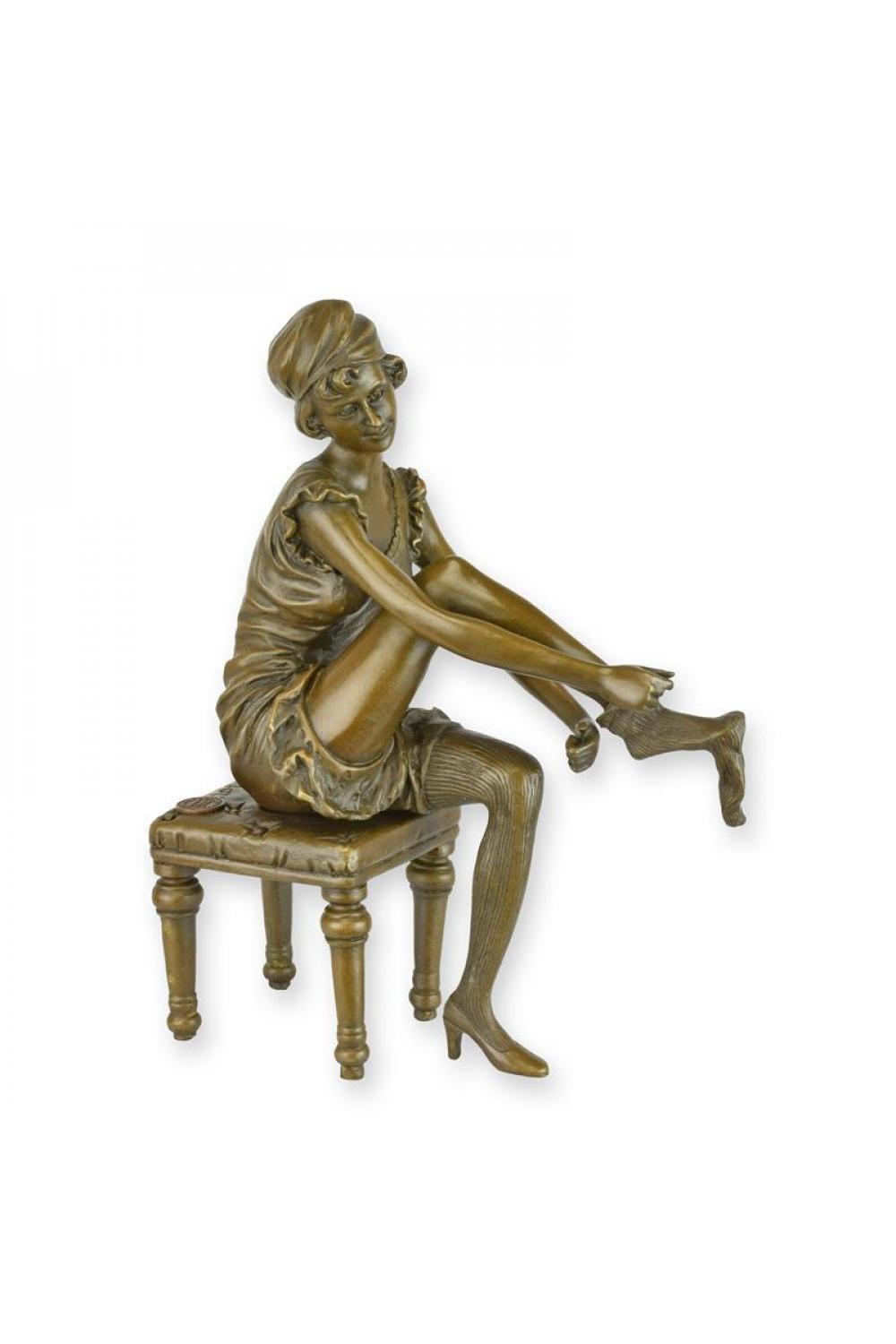 Luxury Bronze Woman Dressing Sculpture - 22 CM