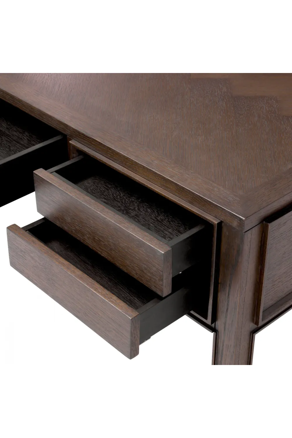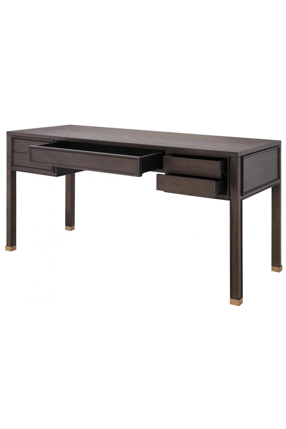 Brown oak veneer finish with elegant brass frame for a stylish luxury office desk