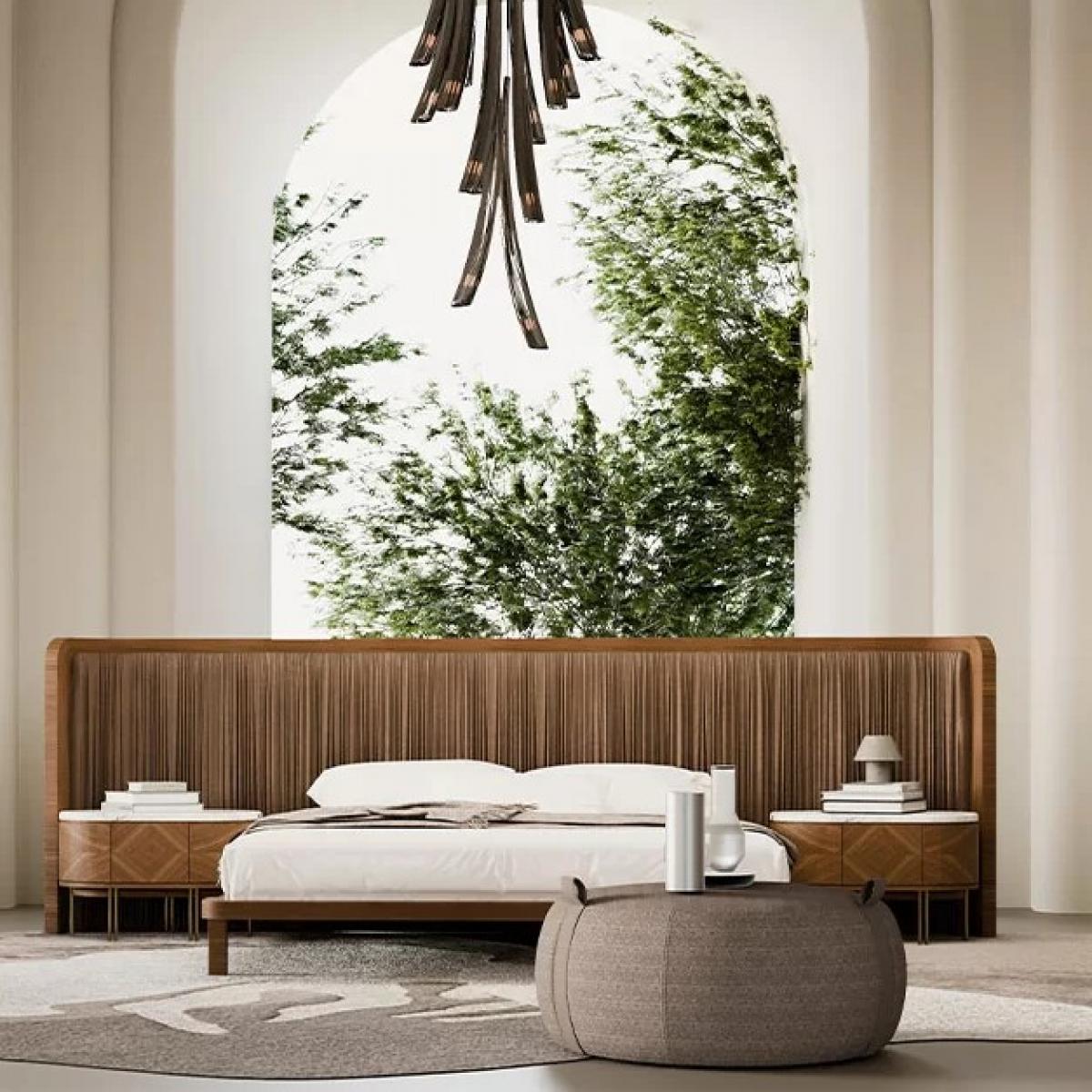 Luxury Brown Wooden Pleated Headboard Hotel Bed-Luxury Bedroom by Luxury Group International