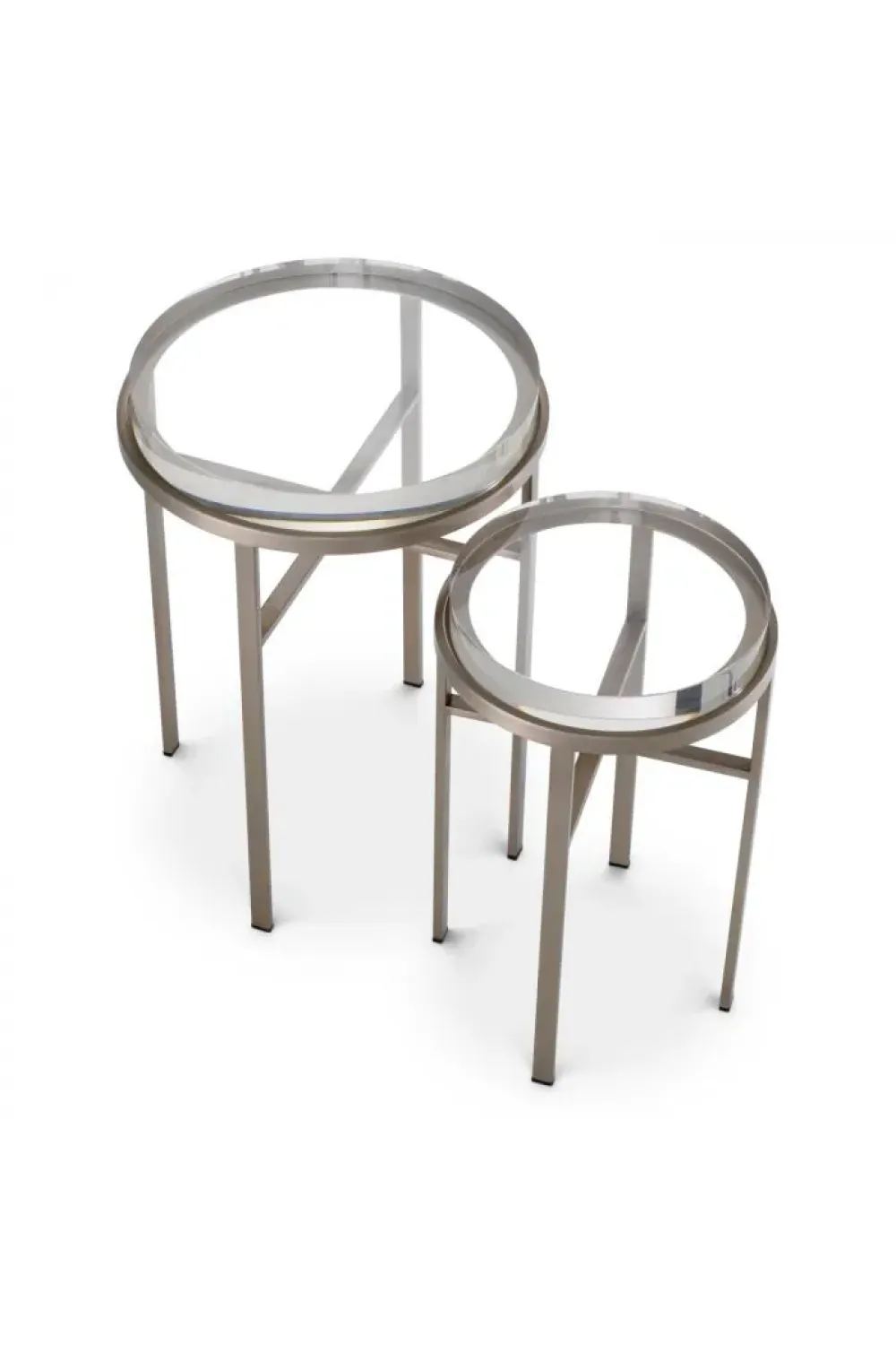 Luxury Brushed Steel Round Nesting Side Table with Glass Top by Luxury Group International