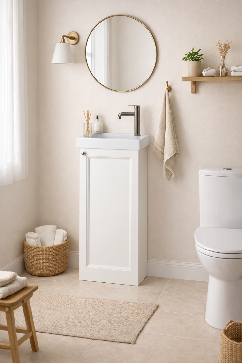 Designed to integrate seamlessly within a curated luxury bathroom vanities collection, this wall-mounted unit is ideal for cloakrooms where efficiency and style must coexist. For homeowners seeking the same refined design language with a freestanding format, the Chantilly Finish Freestanding Single Door Cloakroom Unit in Classic White Color – 40 CM offers a considered alternative, maintaining consistent finishes, proportions, and European craftsmanship across different bathroom layouts.