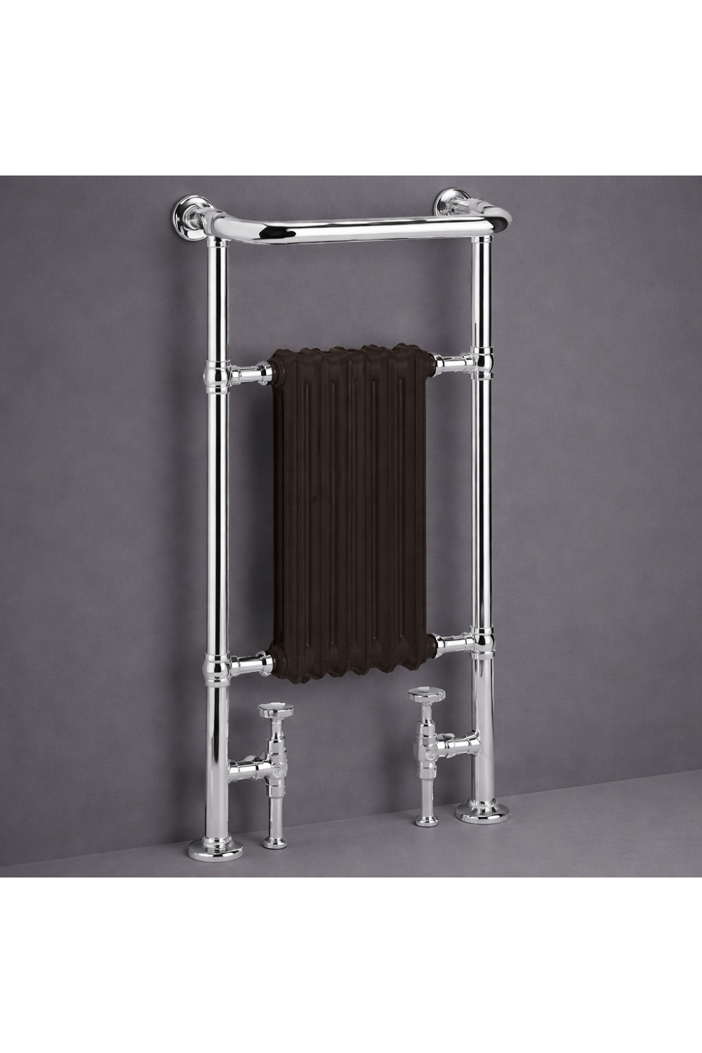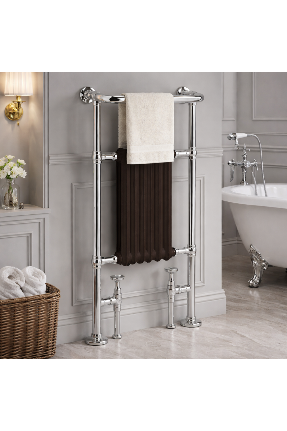 Luxury Chrome Floor Mounted Heated Towel Rail with Integrated Black Column Radiator – 94 CM