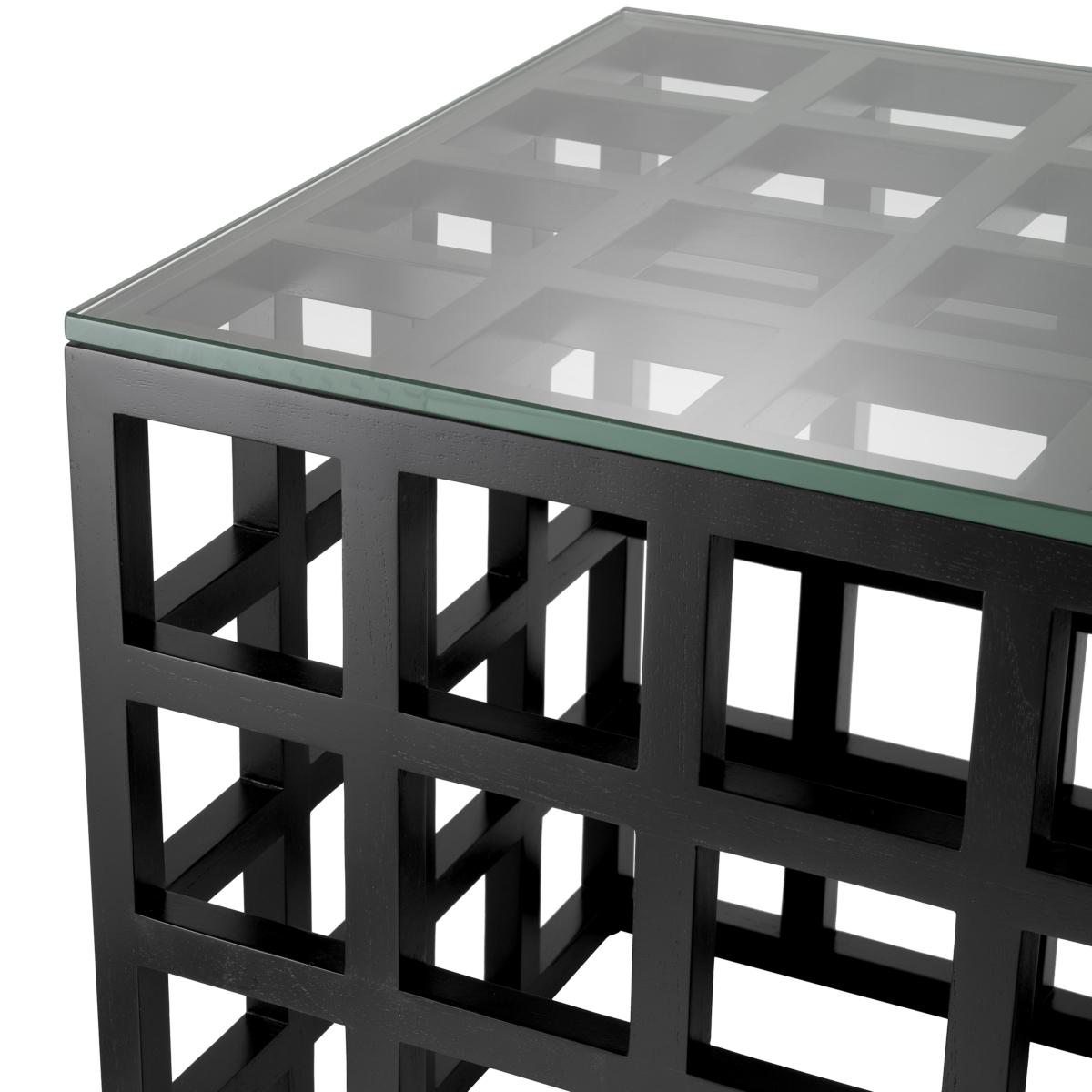 • luxury Classic black & clear glass top rectangular side table with architectural grid design