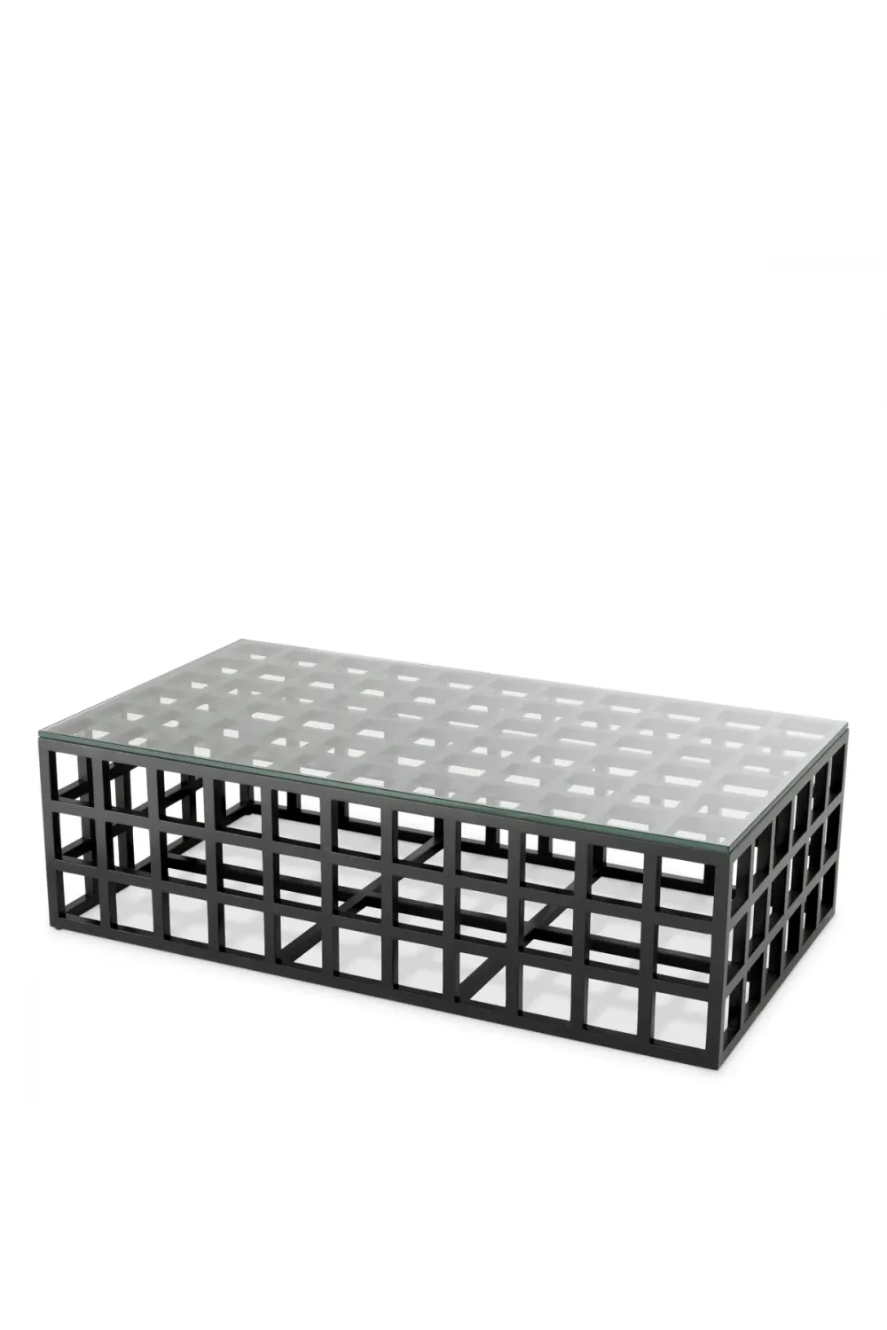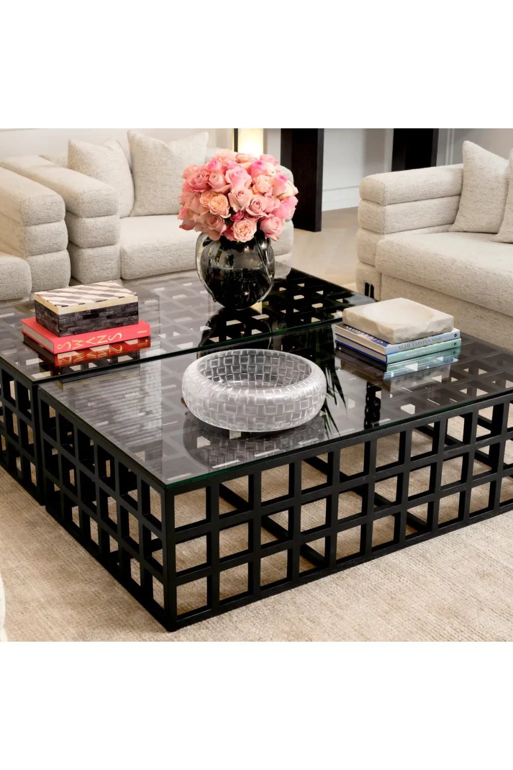 Finished in a rich classic black finish, the table exudes elegance and confidence. The clear glass top introduces lightness and transparency, preventing the design from feeling heavy while highlighting the sculptural base beneath. This thoughtful contrast defines the character of this black coffee table, creating harmony between solid form and refined surface detailing.