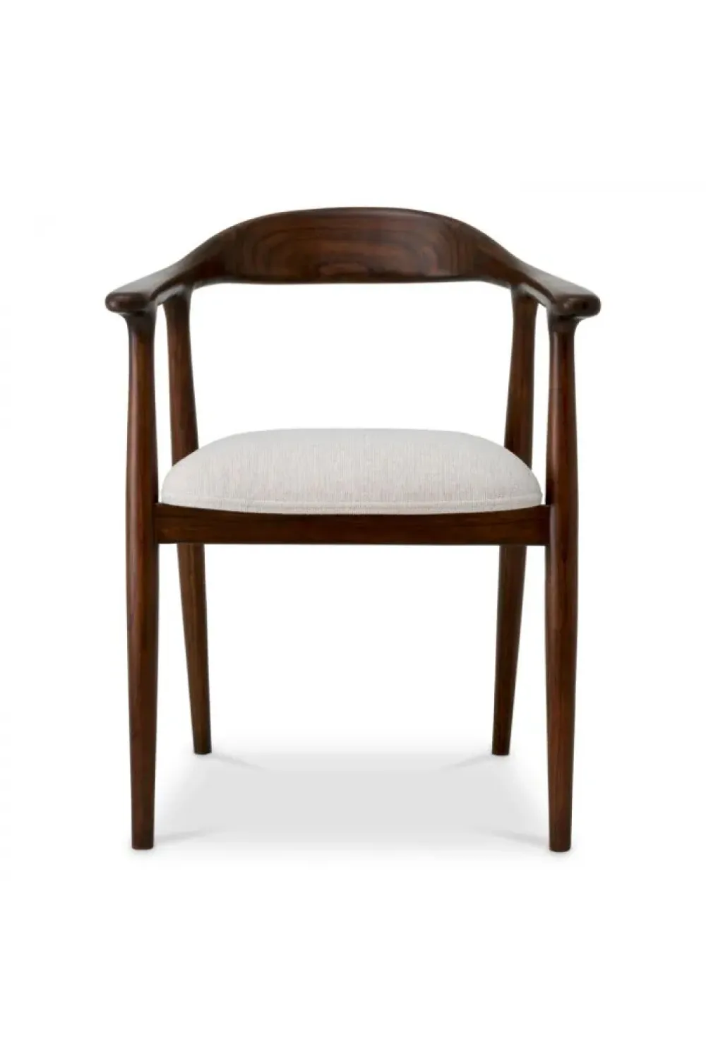This Classic brown wooden dining chair is a refined interpretation of modern-classic European craftsmanship. Expertly crafted from solid wood, the chair features a rich brown finish that highlights natural grain while creating a warm, inviting presence. Gently curved armrests and a sculpted backrest offer both visual harmony and ergonomic comfort, making the design as functional as it is elegant.