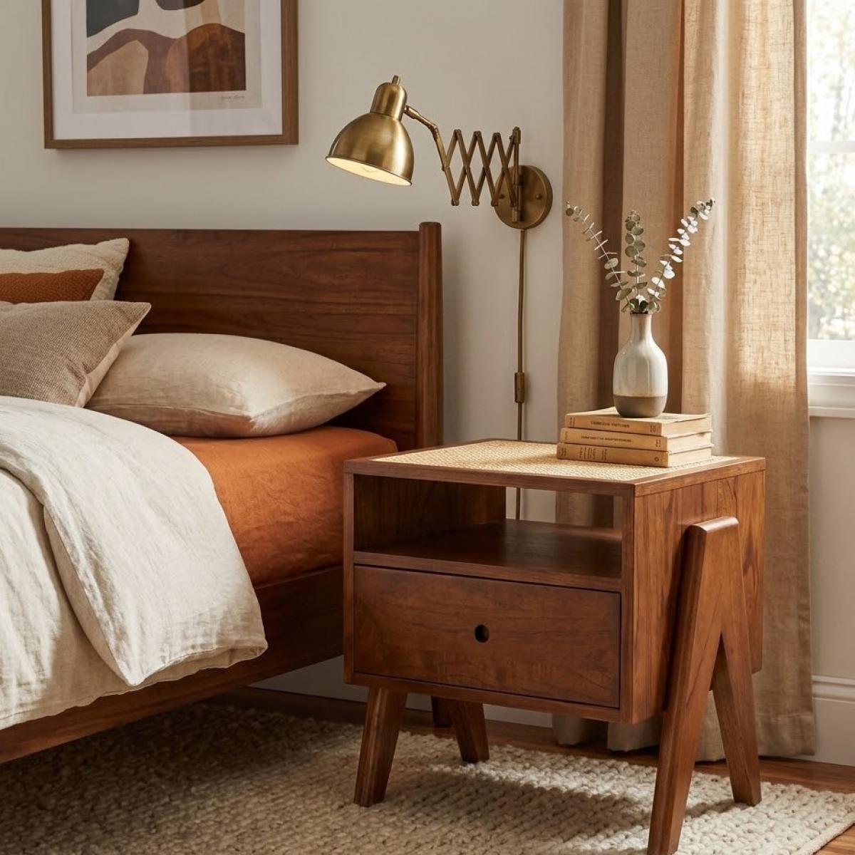 The title Luxury Classic Brown Wooden Nightstand with Rattan Cane Webbing Table Top perfectly describes this piece. "Luxury" highlights the quality craftsmanship, while "Classic Brown Wooden" refers to the rich finish of the solid wood. The "Rattan Cane Webbing Table Top" adds a unique texture to the design, making it stand out in any room. This luxury nightstand fits effortlessly with modern and classic interiors alike, adding both elegance and practicality. Explore our curated luxury nightstand collection to discover more timeless and elegant pieces designed for sophisticated interiors.