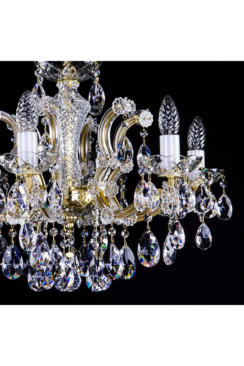 The six candle-style light sources are arranged in harmonious balance to deliver refined crystal chandelier lighting, filling dining rooms, salons, and living spaces with a soft, ambient glow. Cascading crystal elements add depth and movement, ensuring visual richness without overwhelming the surrounding décor. Its classic proportions and detailed craftsmanship make it a natural focal point in sophisticated interiors.