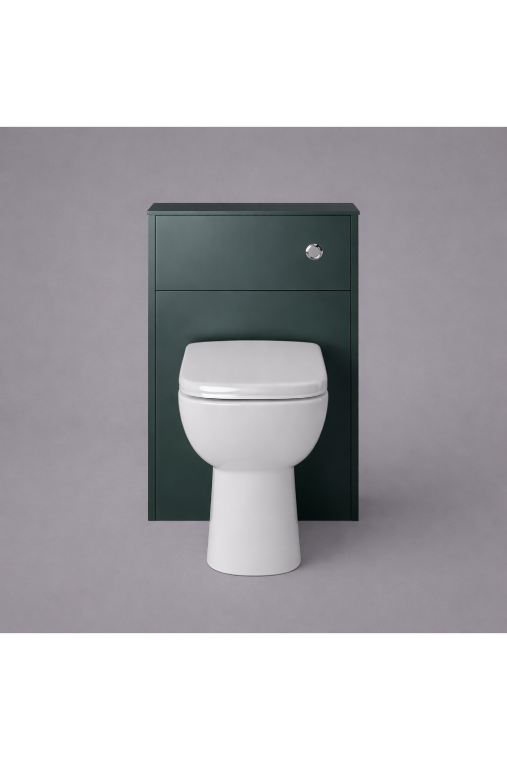 Luxury Classic Green Finish Back-to-Wall WC Cabinet – 550mm Freestanding Toilet Unit with Worktop is crafted to bring architectural clarity and refined storage to modern bathrooms. Designed as a back-to-wall WC cabinet, it neatly conceals plumbing while maintaining a clean, structured aesthetic. The Classic Green finish introduces a subtle depth of color, complemented by precision panel detailing and a painted worktop that enhances durability and visual balance.