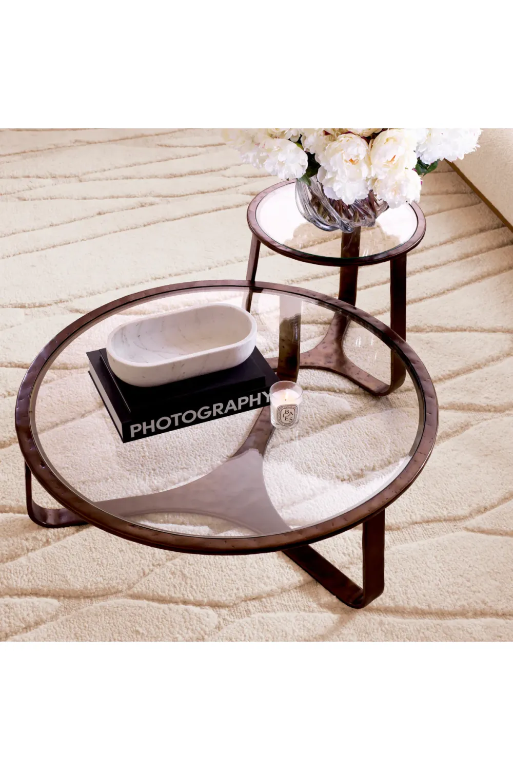 Beyond its visual appeal, this luxury coffee table offers versatility in both private residences and high-end hospitality environments. Its round silhouette softens linear layouts while the glass surface maintains visual continuity. For a contrasting sculptural option, discover the Triangular Clear Glass Top Coffee Table with White Base, offering a contemporary alternative within the same refined design languag