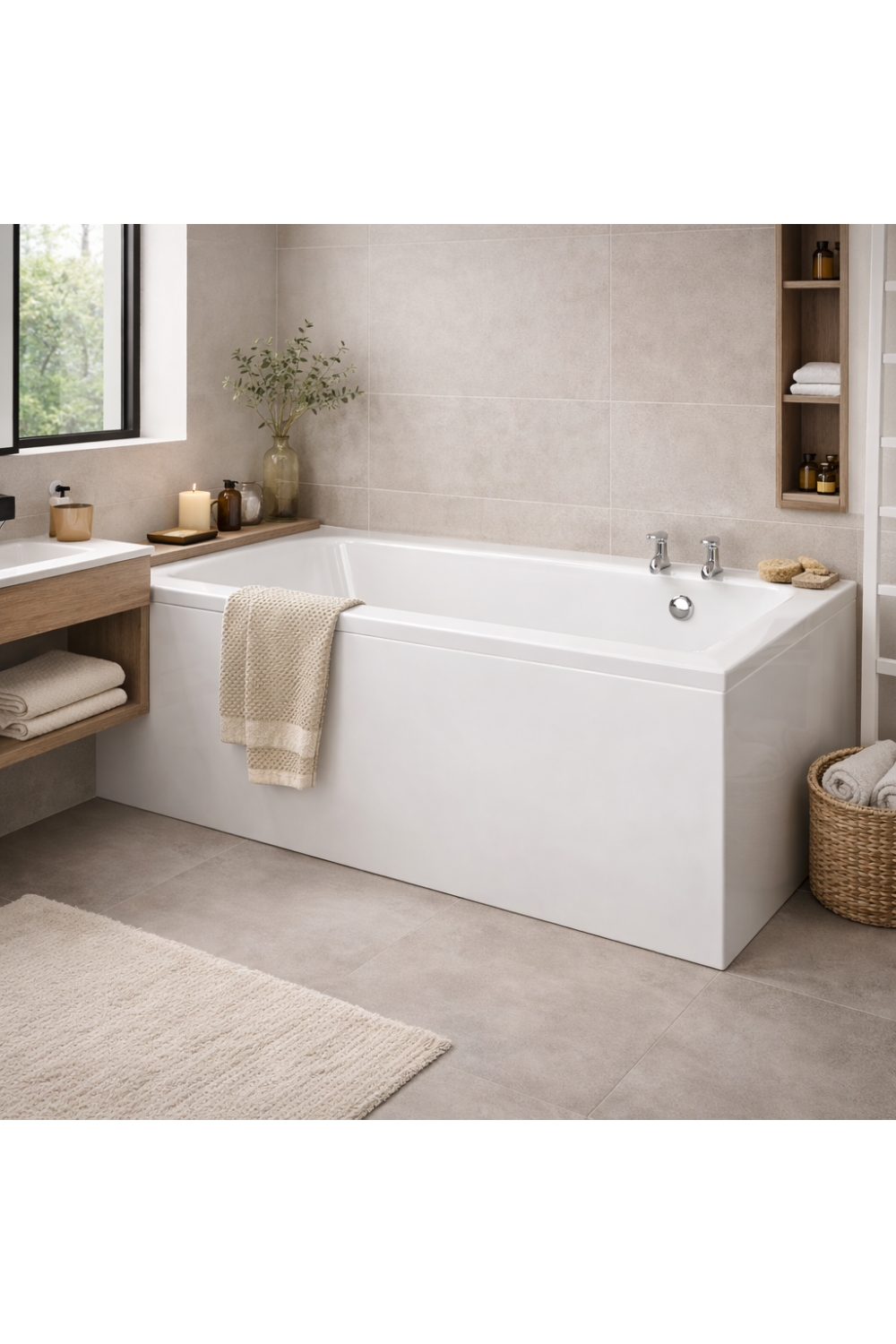 Within thoughtfully planned interiors, this bathtub aligns effortlessly with curated ranges of designer bathtubs, offering a fitted alternative that prioritises efficiency and balance. Its compact proportions allow intelligent space planning while maintaining generous internal comfort. For homeowners seeking a similar fitted profile with directional bathing orientation, the White Acrylic Single Ended Fitted Bathtub presents a complementary option within the same minimalist design language.