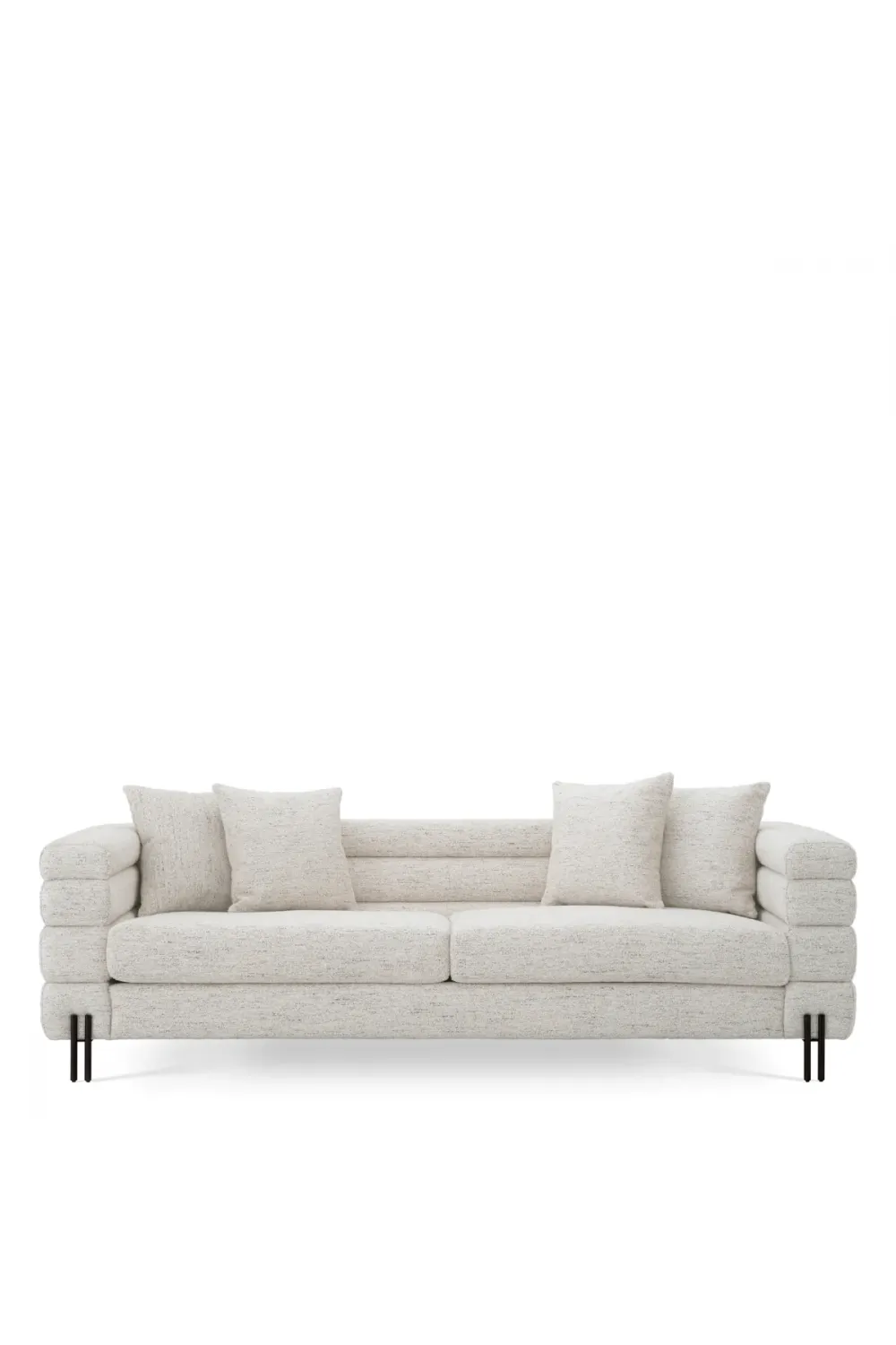 Upholstered in refined fabric options—including seashell off-white, bouclé cream, and mademoiselle beige—this modern sofa delivers both tactile richness and understated sophistication. Each upholstery variant is carefully selected to complement neutral interiors while enhancing the overall sense of luxury and warmth. The look is completed with slim bronze or brushed brass finish legs, introducing a subtle metallic accent that elevates the design without overpowering it.