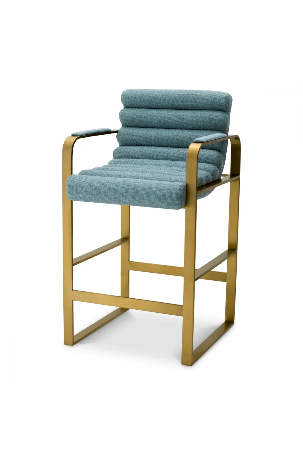 A statement of modern sophistication, this counter stool set combines a brushed brass frame with premium multi-color upholstery, offering comfort, elegance, and timeless appeal.