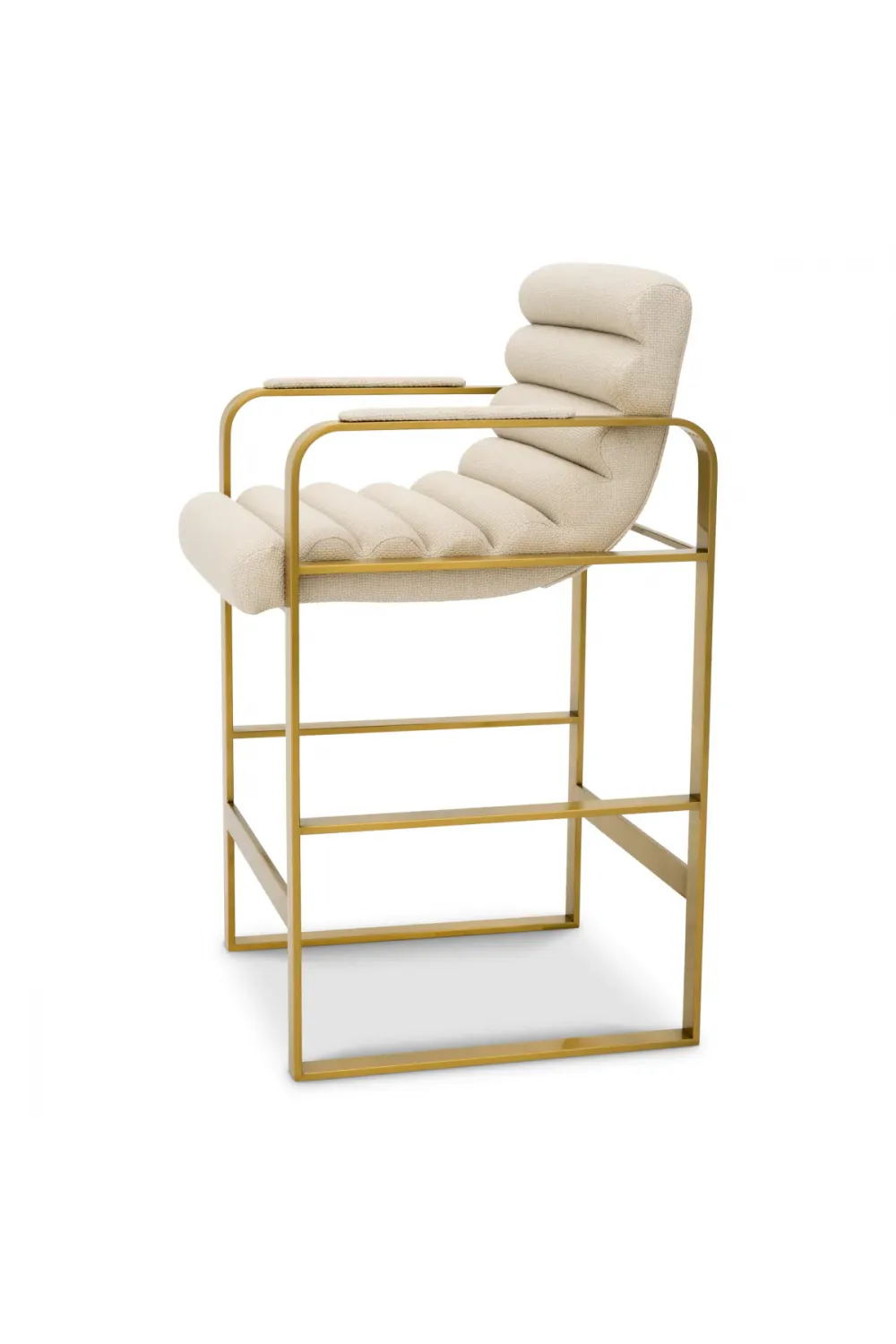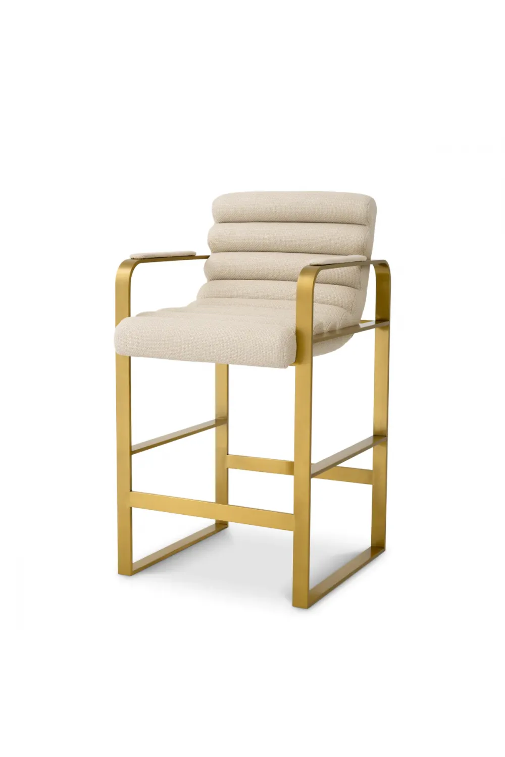 A statement of modern sophistication, this counter stool set combines a brushed brass frame with premium multi-color upholstery, offering comfort, elegance, and timeless appeal.