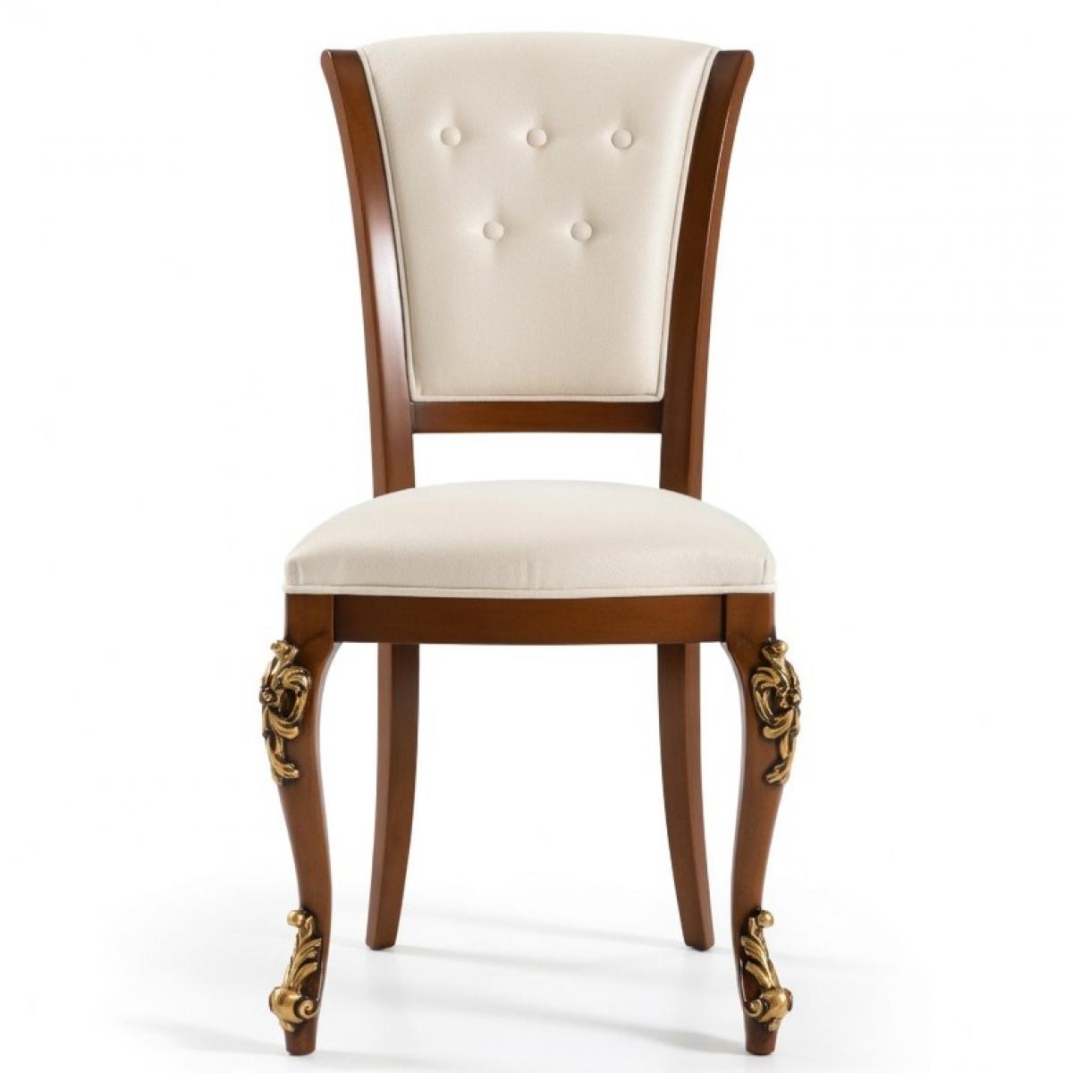 A statement of pure European elegance, this luxury upholstered dining chair features a soft cream button-tufted backrest and a richly carved gold cabriole leg — crafted for those who appreciate true refinement. The perfect luxury chair for dining room settings where classical beauty and comfort are equally cherished.