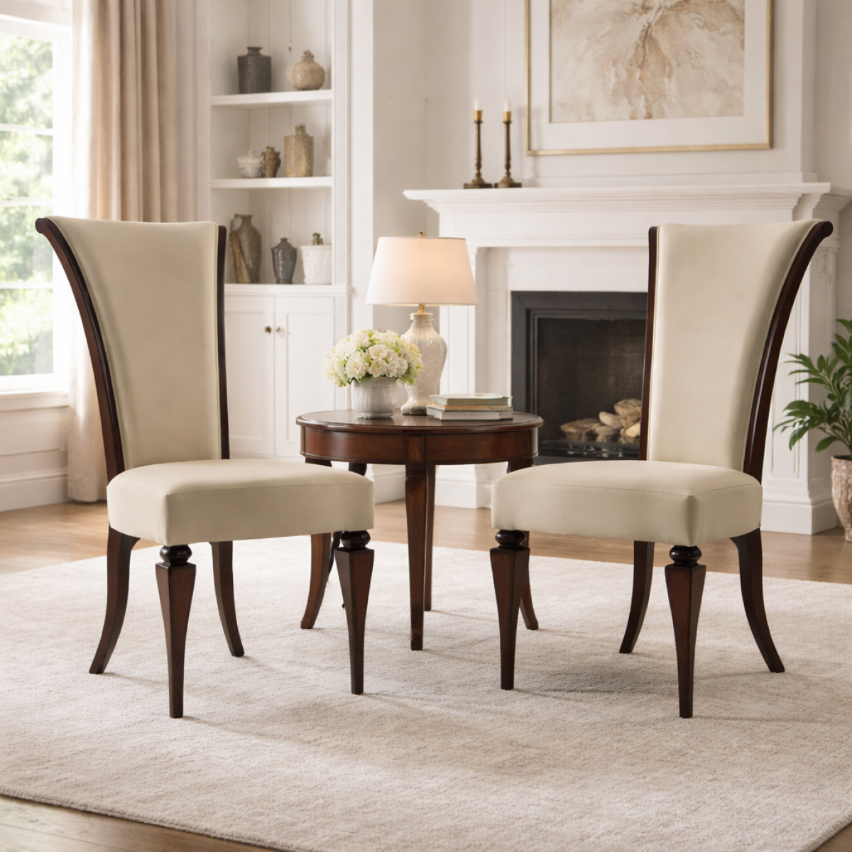 Pair this refined seating option with a luxury dining table to create a cohesive and elegant dining environment. The cream upholstery and walnut frame complement marble, wood, and glass dining surfaces effortlessly. Whether styled in formal dining rooms or luxury hospitality interiors, this chair enhances the space with timeless European sophistication.