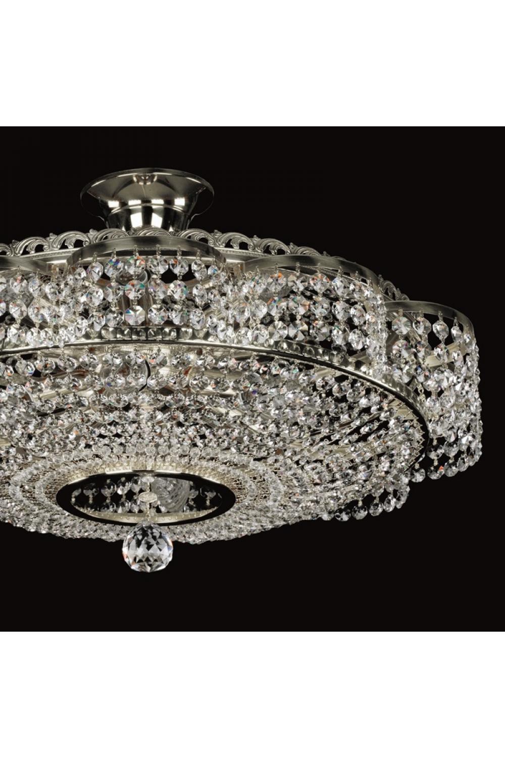 Luxury Crystal Basket Ceiling Chandelier in Polished Nickel – 6 Lights brings together classic basket proportions and contemporary metal detailing to create a striking ceiling feature. Crafted with precision-cut crystal elements and a polished nickel frame, this crystal chandelier lighting solution delivers balanced illumination with a soft, shimmering glow that enhances architectural depth.