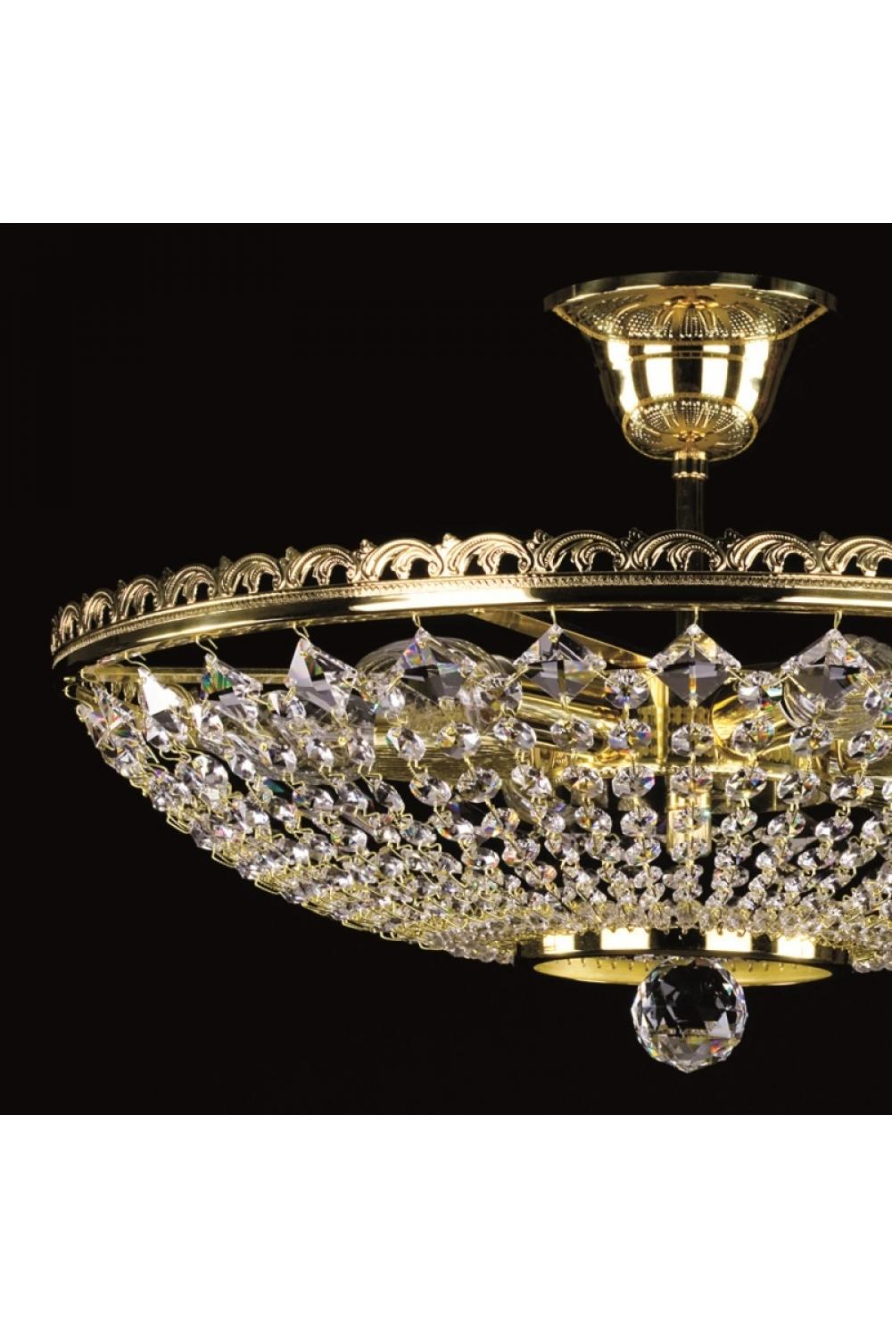 This refined luxury crystal chandelier showcases a classic bowl-shaped silhouette enriched with sparkling crystal trimmings and a polished brass finish. Designed as one of the elegant luxury dining room chandeliers, it brings balanced brilliance to both modern and traditional interiors.