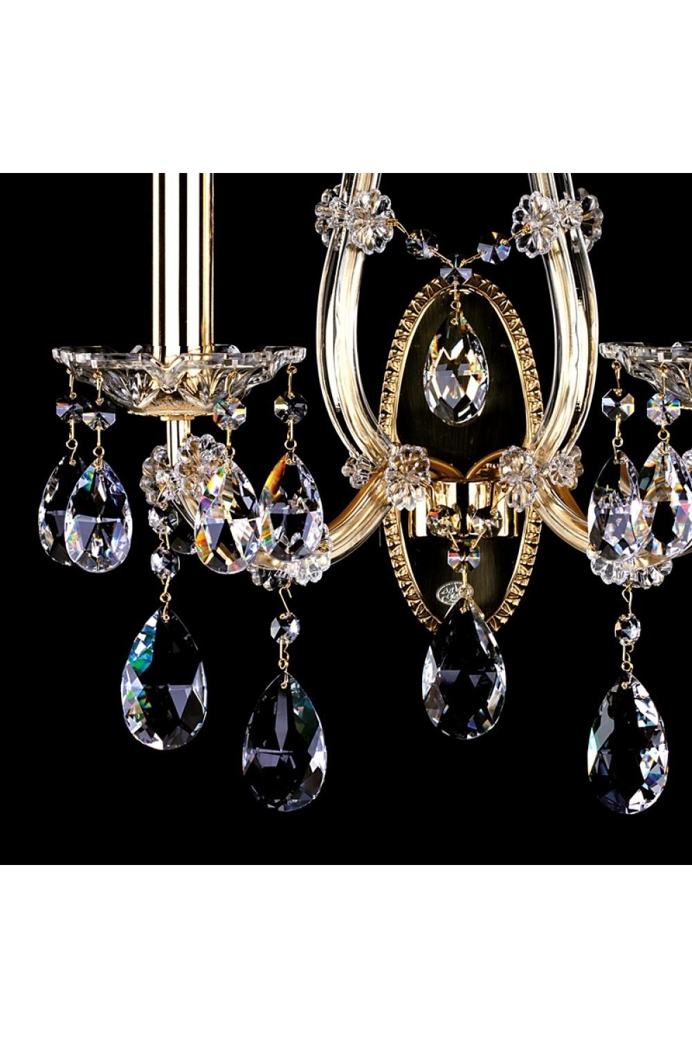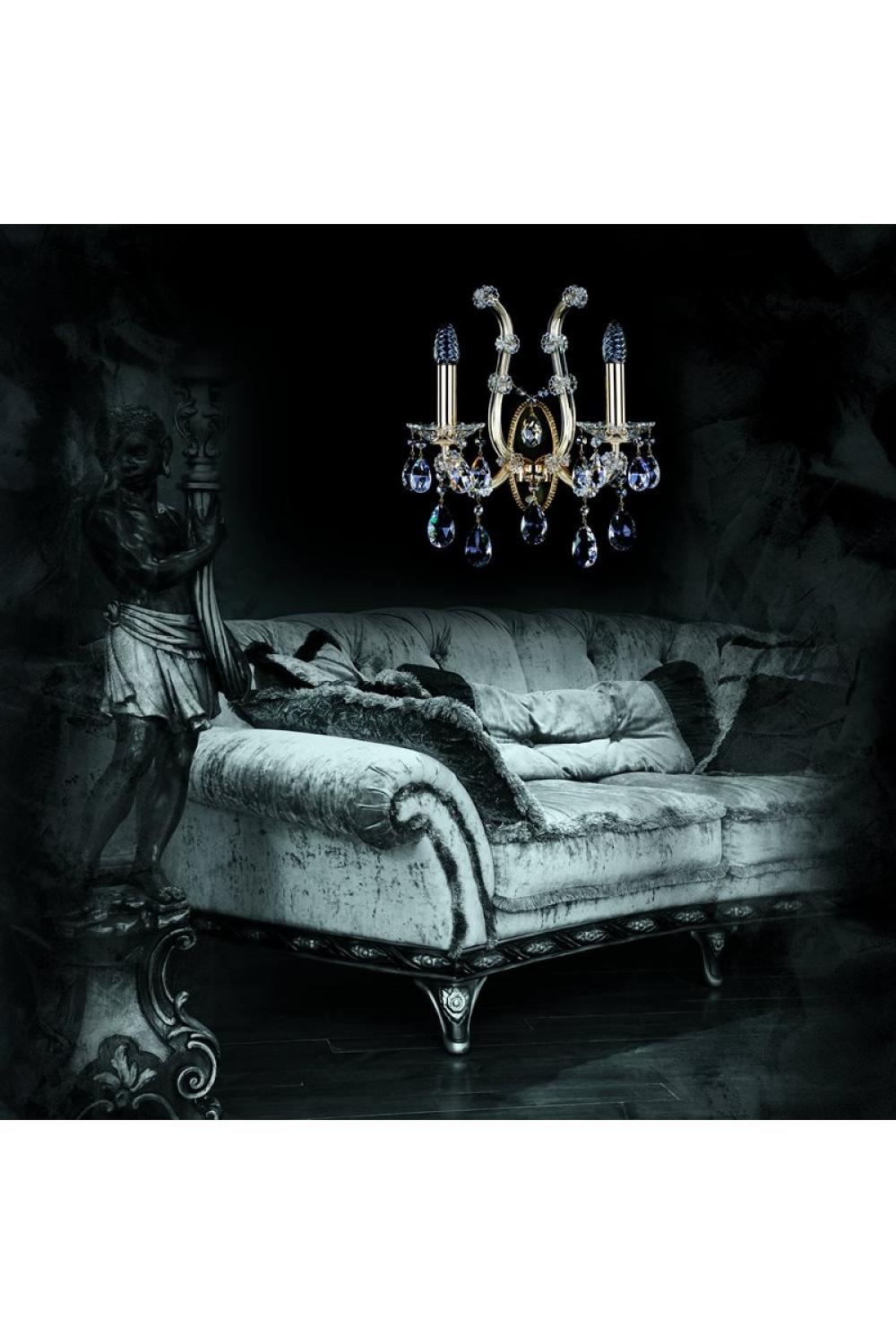 Luxury Crystal Wall Sconce with Polished Brass Finish – 2 Lights embodies classical European lighting artistry in a refined wall-mounted form. Crafted as a statement luxury wall lamp, it is adorned with Crystal Exclusive crystal trimmings, precision-cut crystal drops, and sculpted glass elements that reflect light with captivating sparkle. Fine metal components finished in polished brass introduce a rich golden tone, creating a harmonious balance between brilliance and elegance.