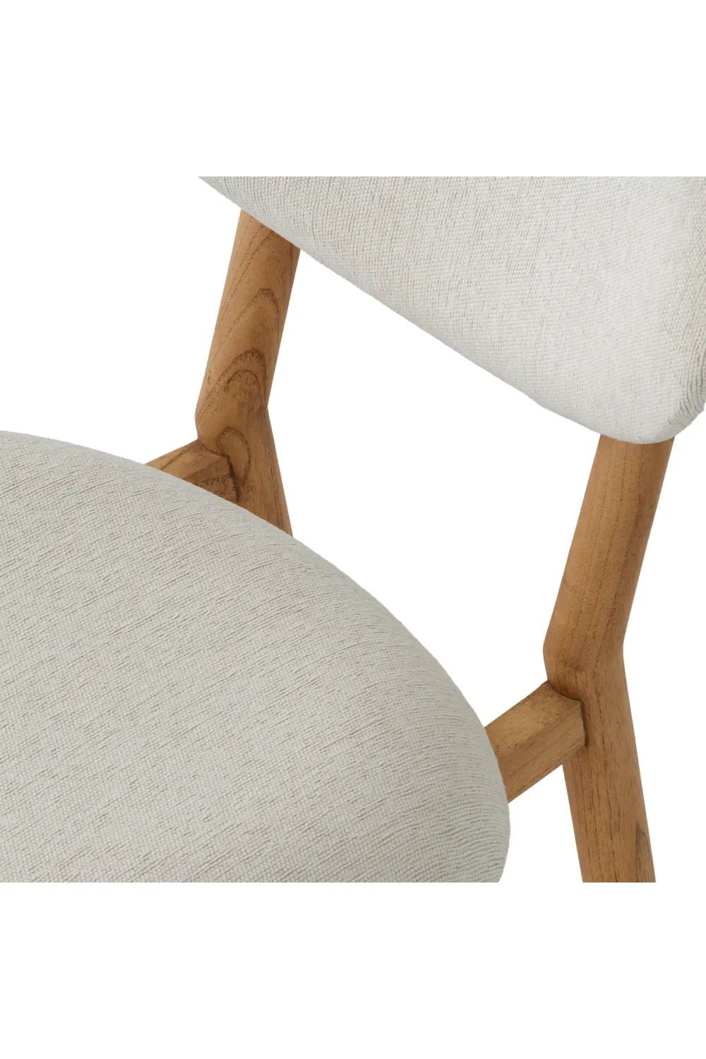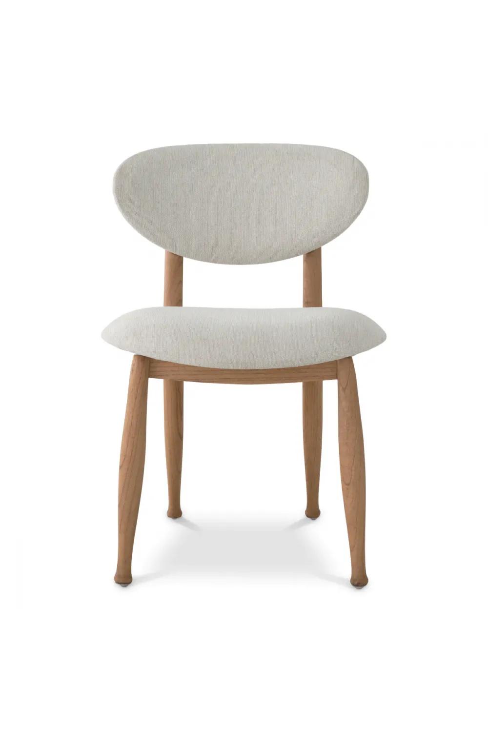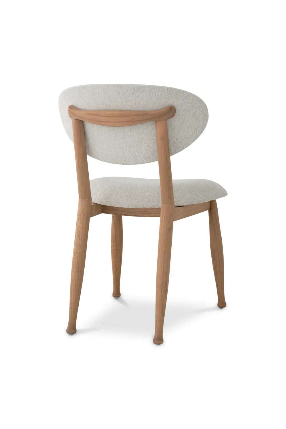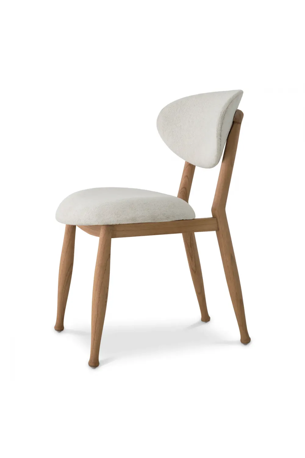 Curved Back Dining Chair crafted with a sculptural silhouette for elegant dining interiors. Finished in natural wood with refined white upholstery for a timeless European aesthetic. Overall height of 80 cm with a supportive seat height of 47.5 cm for everyday comfort. Soft sentier cream fabric offers a tactile, inviting seating experience. High-density foam seat supports up to 90 kg with lasting resilience. A refined wooden dining chair designed exclusively for indoor luxury settings.