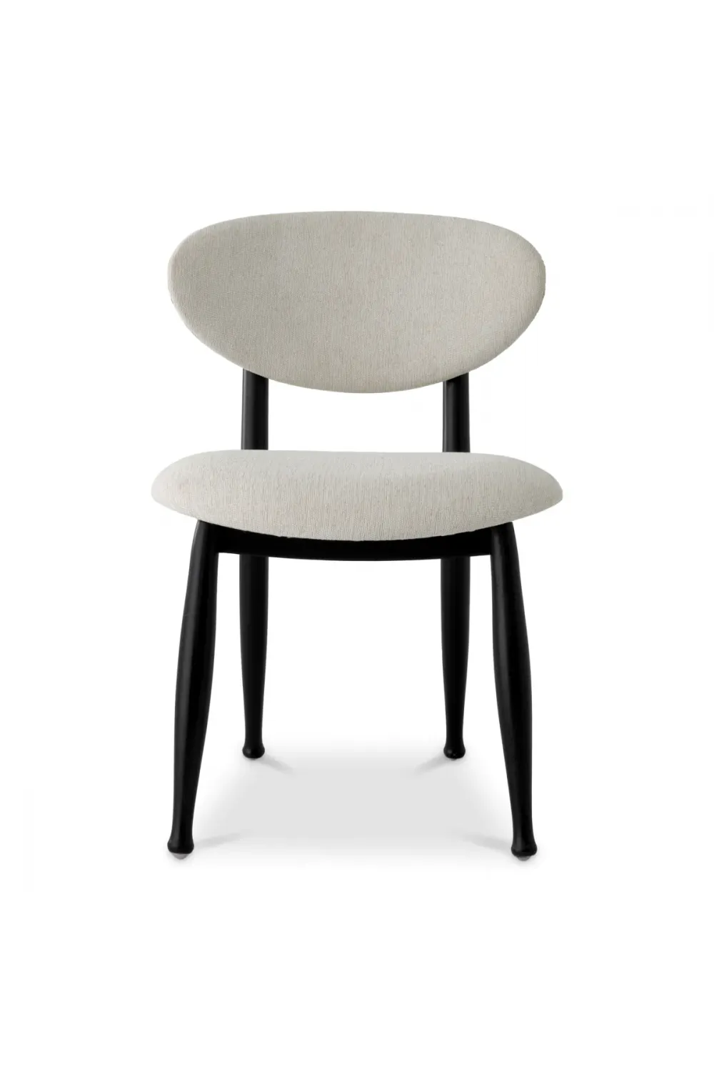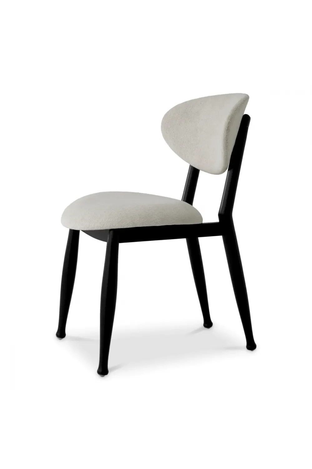 Curved back silhouette with sentier cream upholstery and a classic black finish defines this refined seating piece. This Curved Back Dining Chair stands at 80 cm in height and supports up to 90 kg. Its softly contoured back offers ergonomic comfort for everyday dining. Crafted with a solid wood frame for durability and balance. Upholstered in smooth fabric with a calm, neutral tone. A refined classic black finish dining chair for modern European interiors.