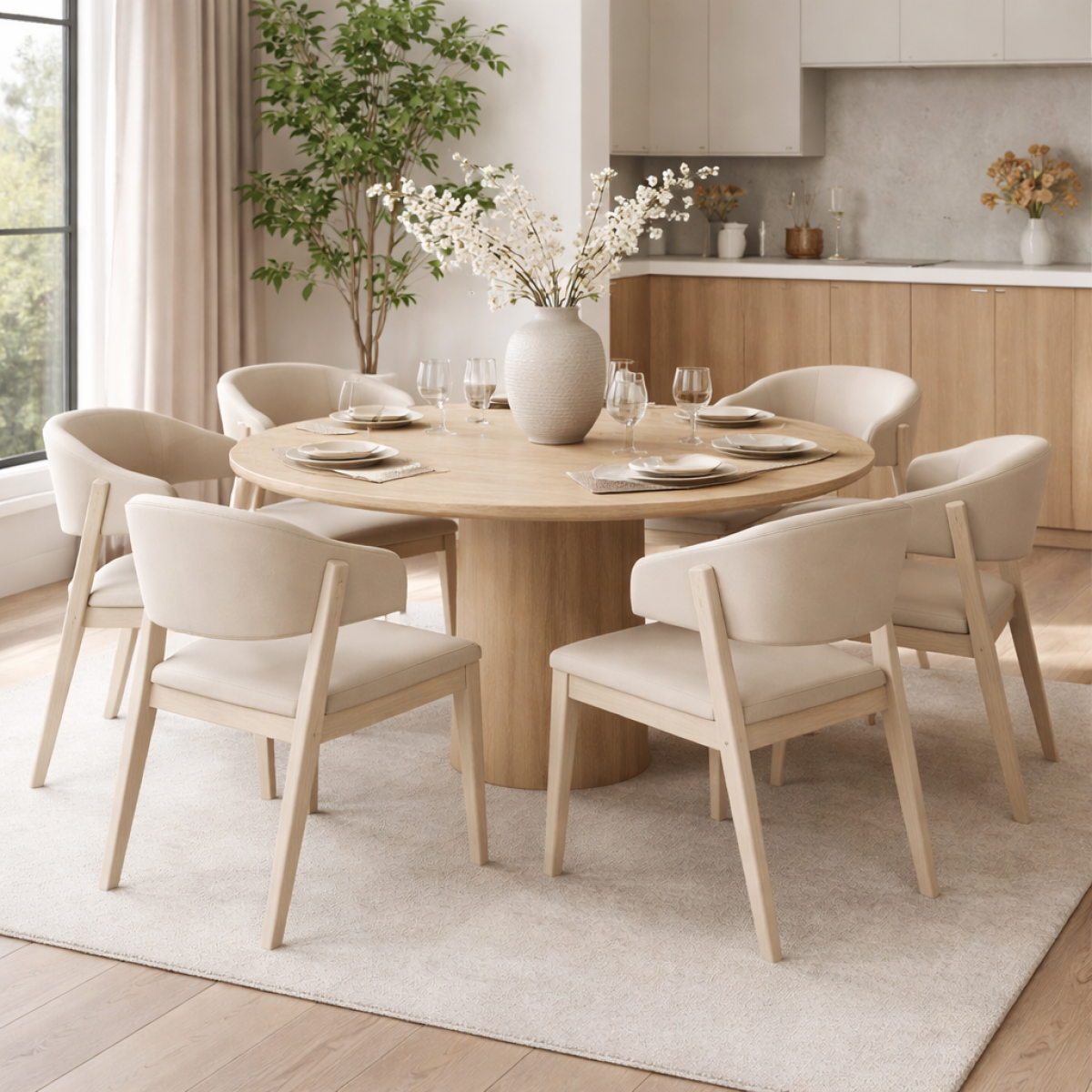 Luxury Curved Back Upholstered Dining Armchair in Warm Sand with Matching Wooden Frame is a refined luxury upholstered dining chair designed to bring sculptural elegance into sophisticated European interiors. Its gently enveloping curved back and integrated armrests create a seamless silhouette that enhances both comfort and visual flow. The warm sand upholstery adds depth and softness, while the matching wooden frame ensures structural harmony and stability. With its balanced 47 cm seat height and ergonomic proportions, this design stands among distinguished luxury chairs for dining room that blend architectural clarity with inviting comfort.