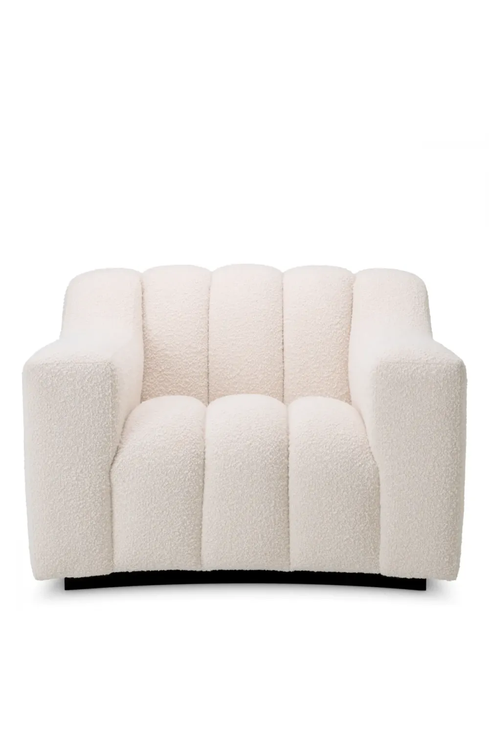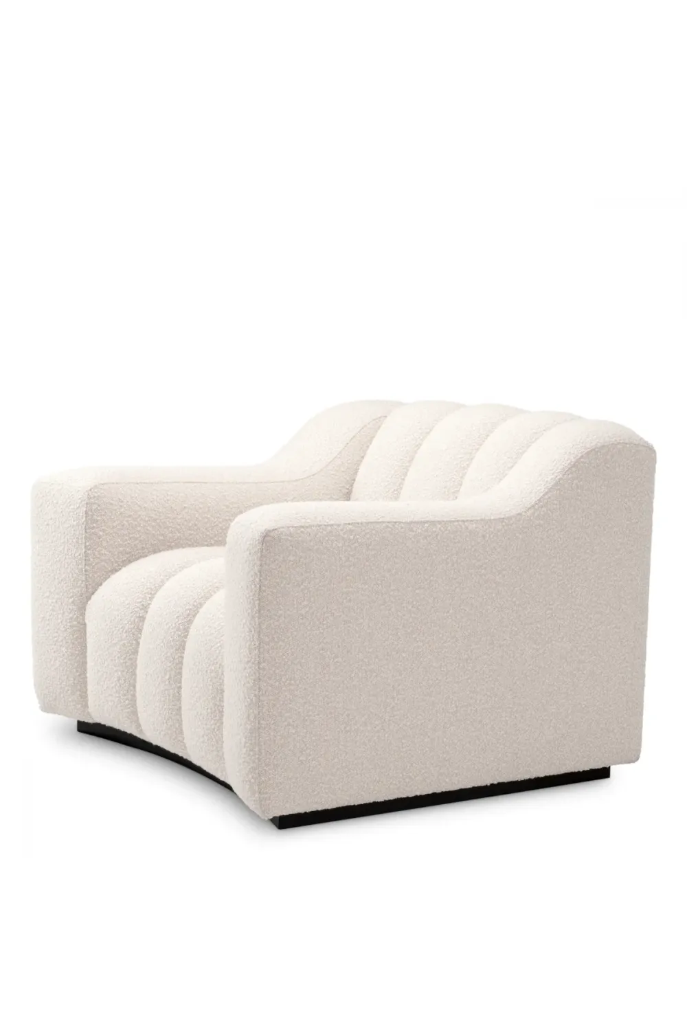 A sleek black base anchors the design, offering subtle contrast and architectural refinement. Whether placed as a standalone accent or styled alongside modular seating, this luxury sofa chair introduces sophistication and cohesion into curated interiors. Its versatile presence suits upscale residences, boutique lounges, and designer living rooms.