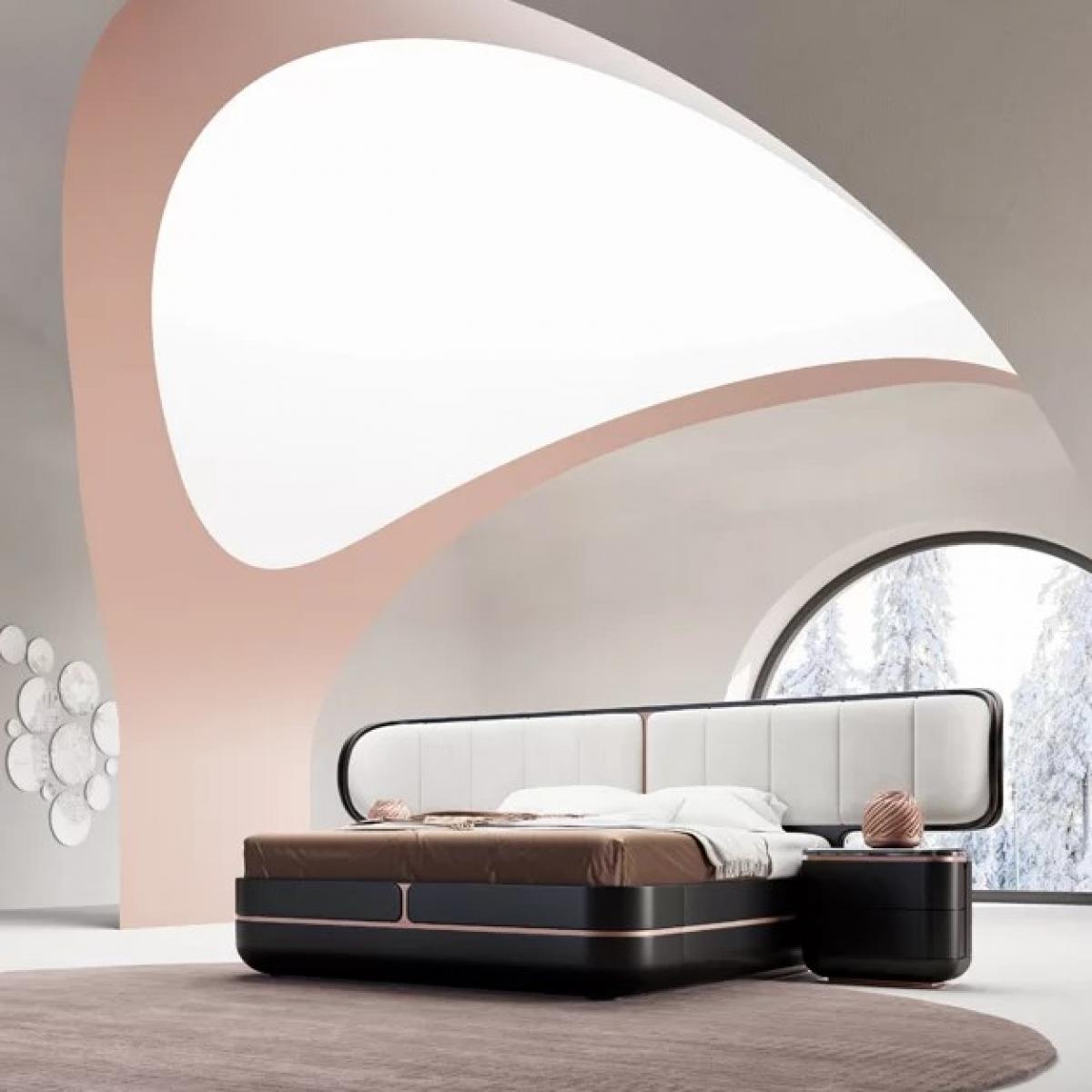 This hotel bed elevates bedroom interiors with premium materials and contemporary European styling.