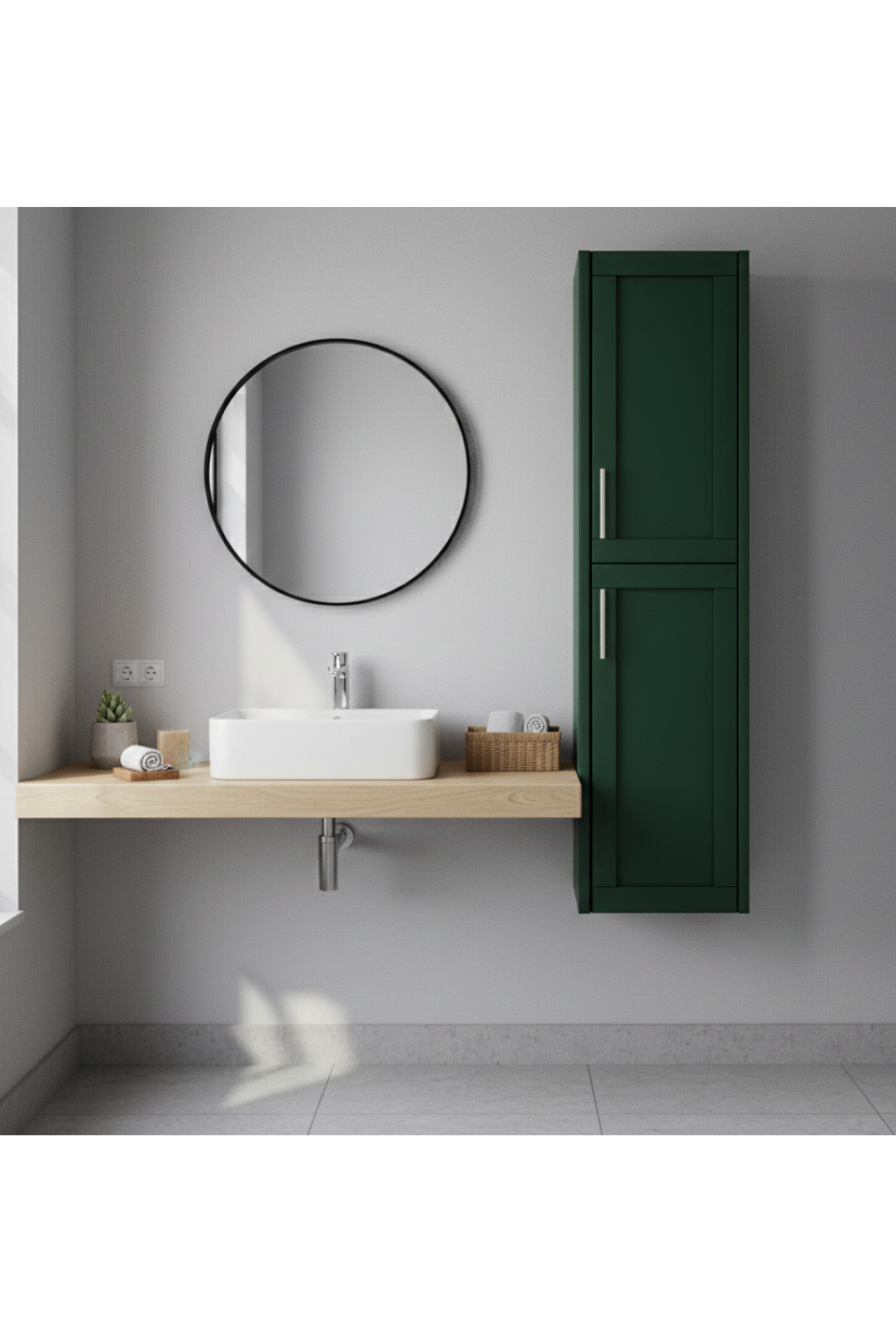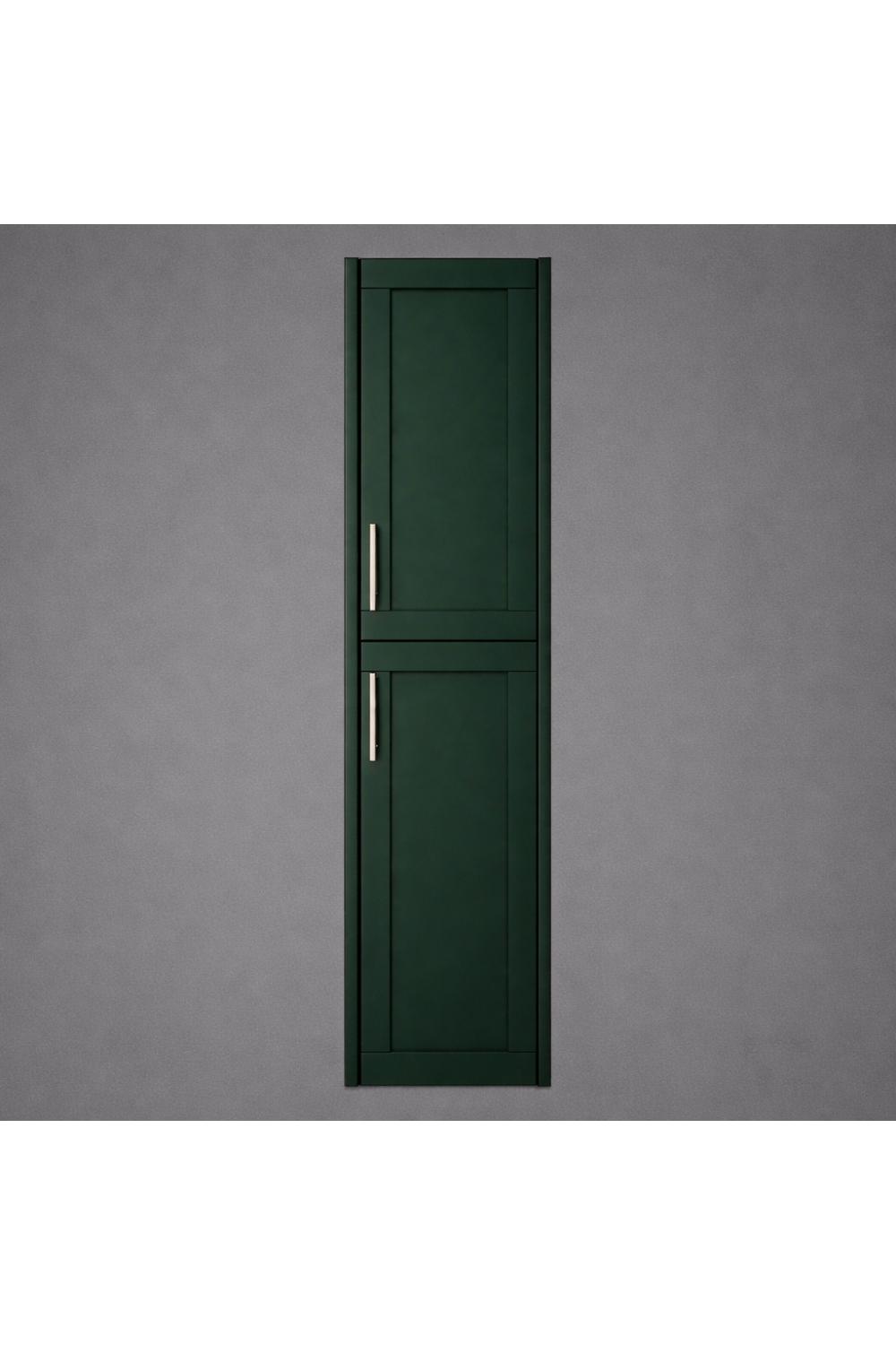 A refined double door tall wall cabinet crafted for vertical elegance, this designer double door wall cabinet in Classic Green offers sophisticated storage for premium bathrooms, blending European design sensibility with everyday functionality.