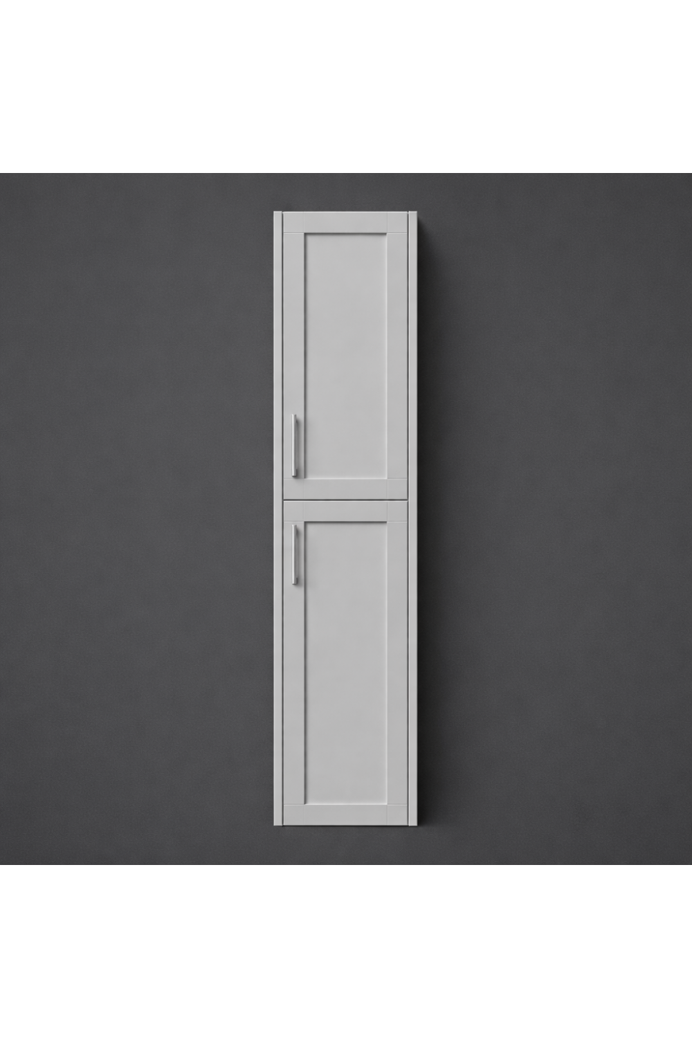 A refined double door tall wall cabinet in an elegant Dove Grey finish, designed to deliver vertical storage while maintaining a clean, floating aesthetic. This designer double door wall cabinet offers practical organization with a distinctly European luxury appeal.