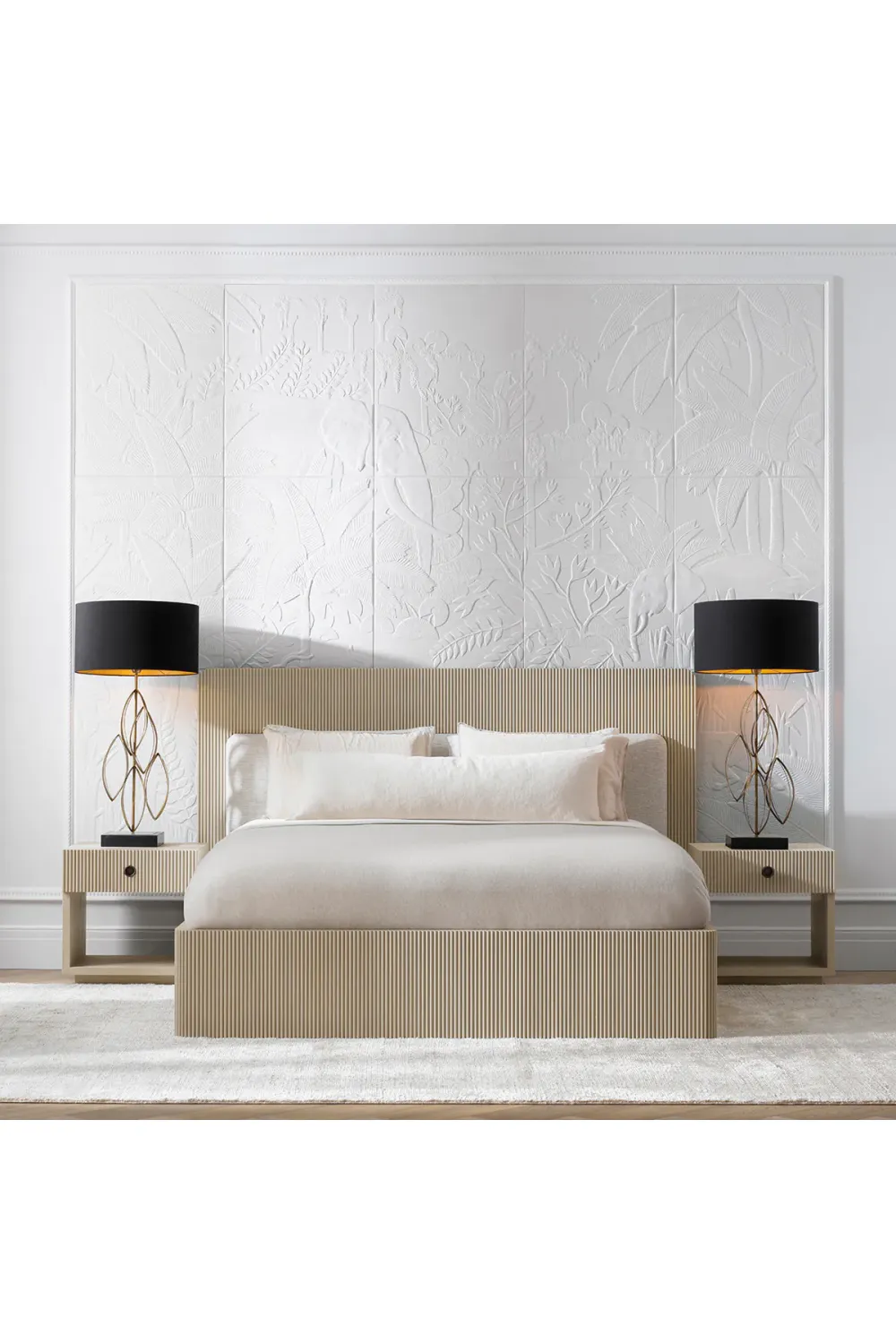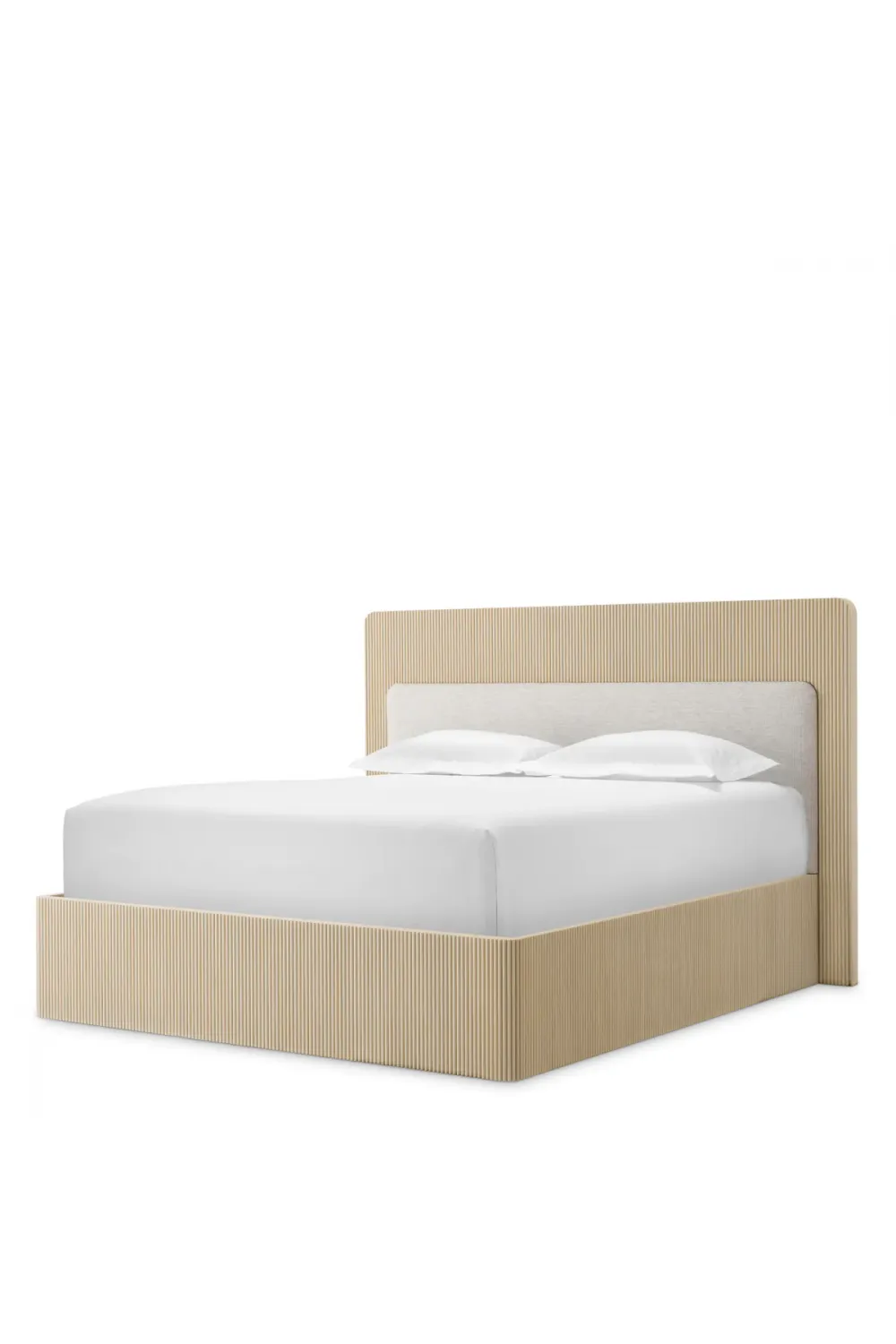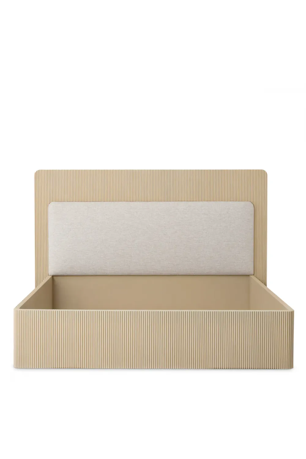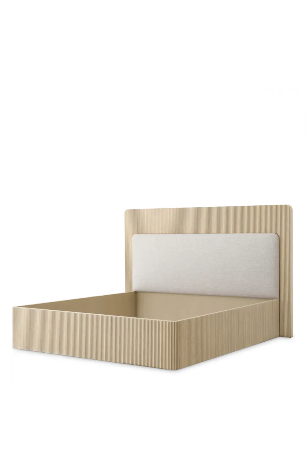 Crafted for discerning luxury shoppers across Europe, this luxury bed showcases a seamless fusion of textured woodwork, refined upholstery, and modern elegance. Designed with ribbed solid wood in a softly washed tone and upholstered in natural Durini fabric, it introduces a calming, elevated aesthetic to any bedroom. The muted, earthy palette captures the essence of high-end European design—sophisticated, quiet, and effortlessly timeless.