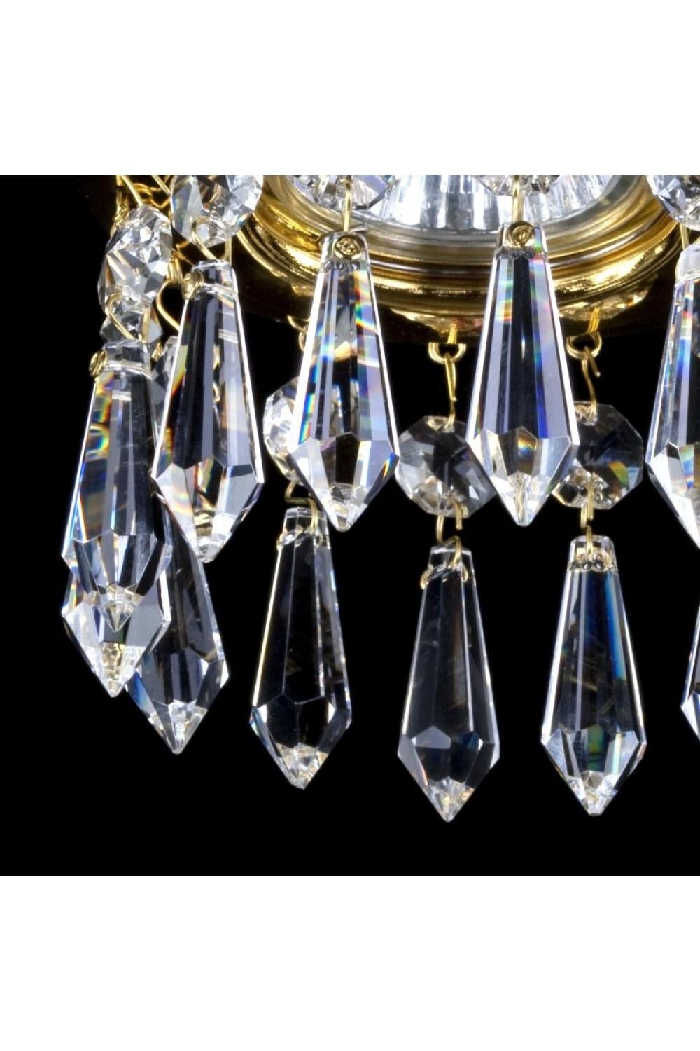 A refined luxury crystal chandelier featuring faceted prism-cut Crystal Exclusive drops and a polished brass finish, designed to deliver architectural sparkle and elegant illumination. Ideal for sophisticated interiors inspired by luxury dining room chandeliers, offering timeless European refinement in a compact ceiling profile.