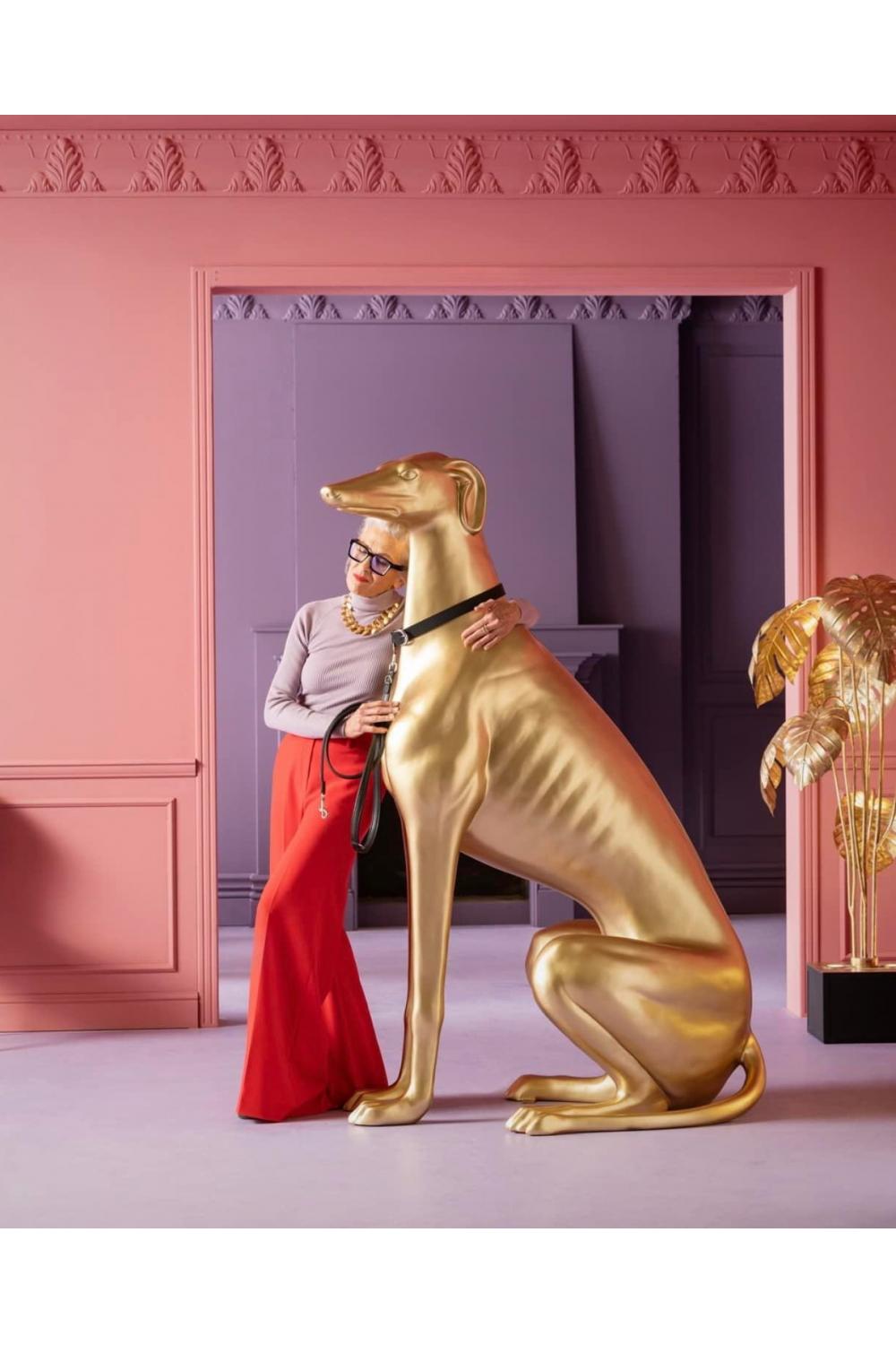 Luxury Fiberglass Greyhound Sculpture in Sitting Position - Gold Edition