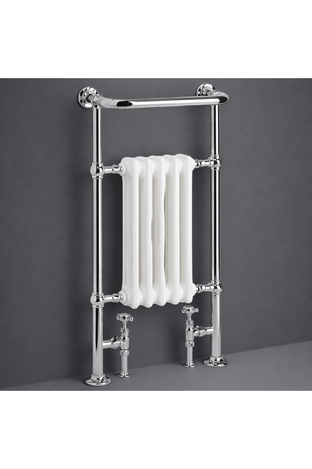 • Elegant floor mounted heated towel rail with traditional column radiator design
