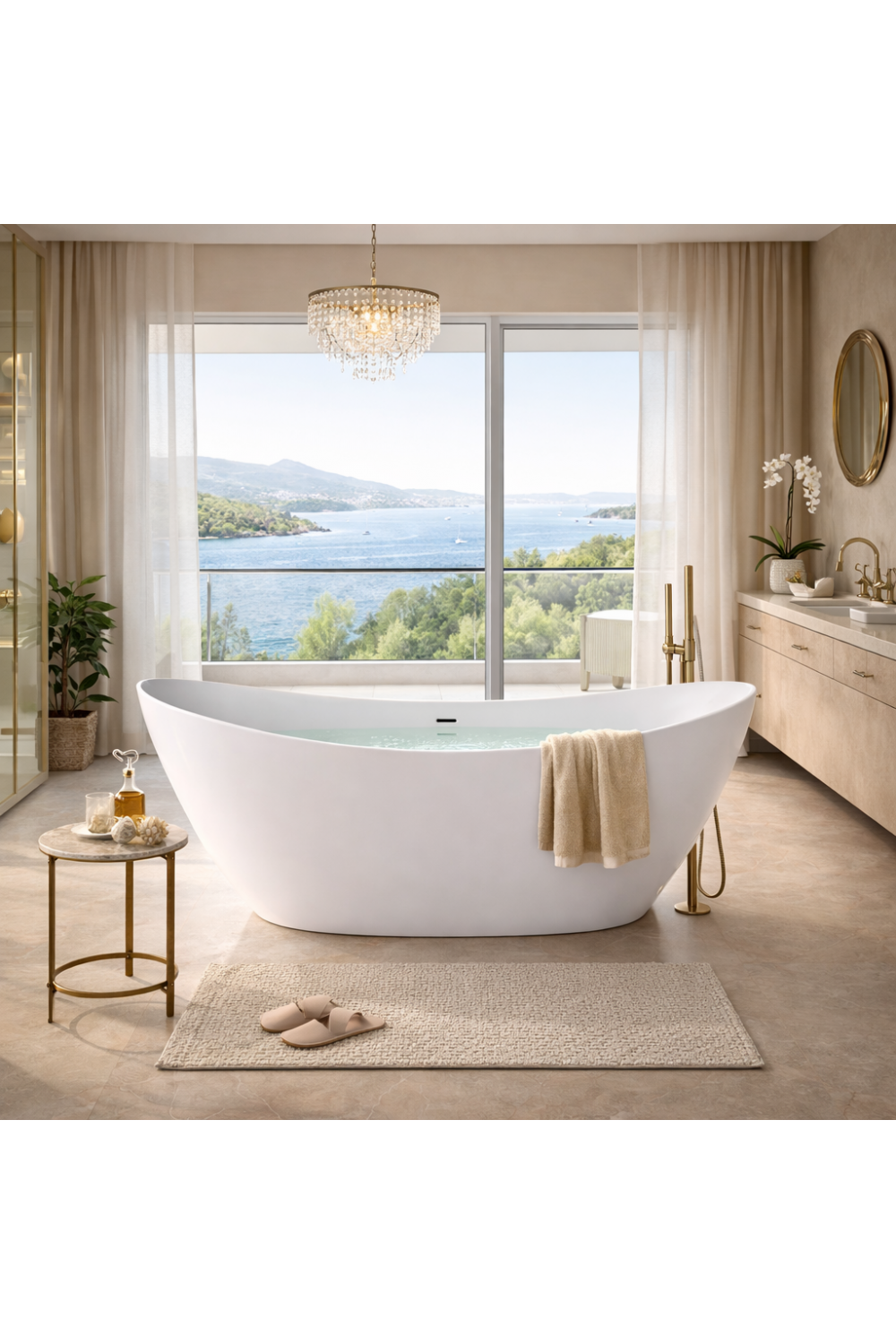The freestanding structure allows flexible placement without compromising visual balance, making it suitable for both spacious bathrooms and compact layouts. Its clean architectural profile aligns naturally with Modern Bathtubs, establishing it as a considered Luxury Freestanding Tub for Apartments and contemporary homes where elegance and practicality must coexist.