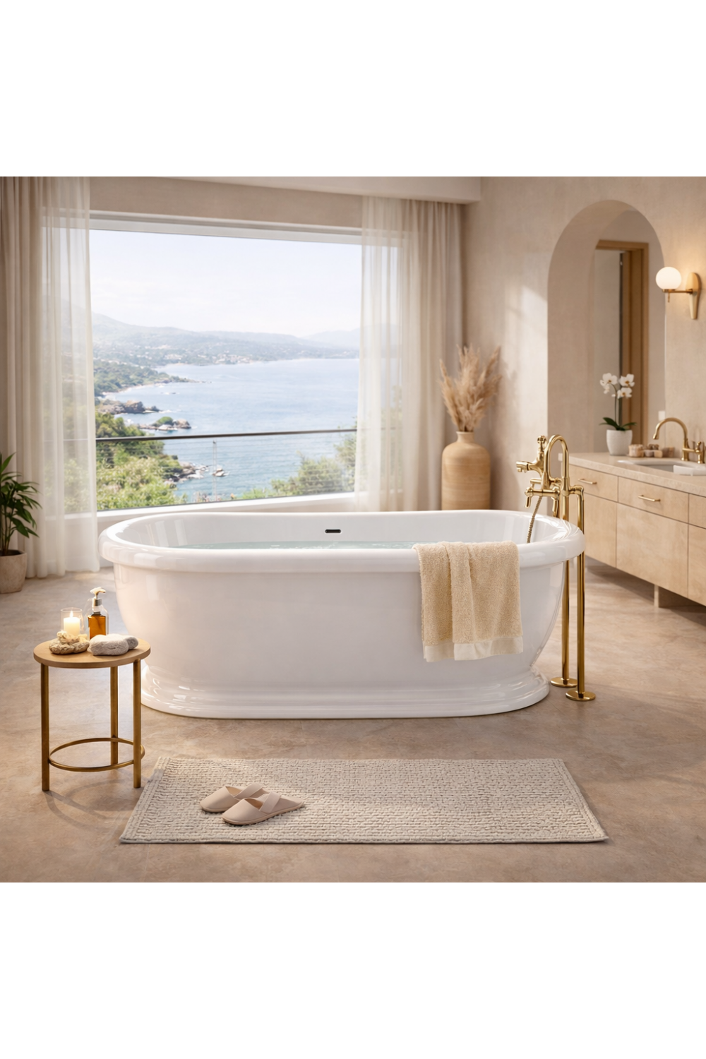 Expertly formed from premium-quality acrylic, the bath features a smooth European white finish with a refined tactile feel. The robust construction supports excellent heat retention and long-term durability while remaining effortless to maintain, positioning this piece as a dependable luxury freestanding bathtub designed for everyday indulgence and lasting visual appeal.