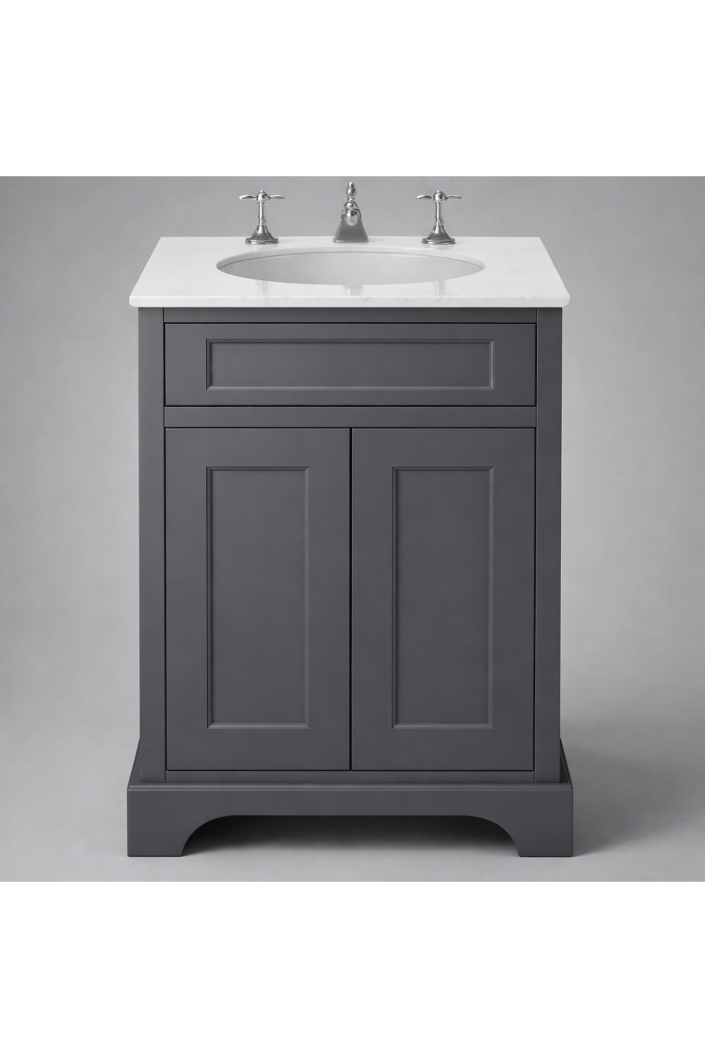 Sophisticated and versatile, this freestanding double door vanity unit features a smooth-glide single drawer and spacious double door cabinet, finished in deep Graphite. Crafted as a refined designer vanity unit, it delivers structured storage and understated elegance for contemporary luxury vanities for bathroom interiors.