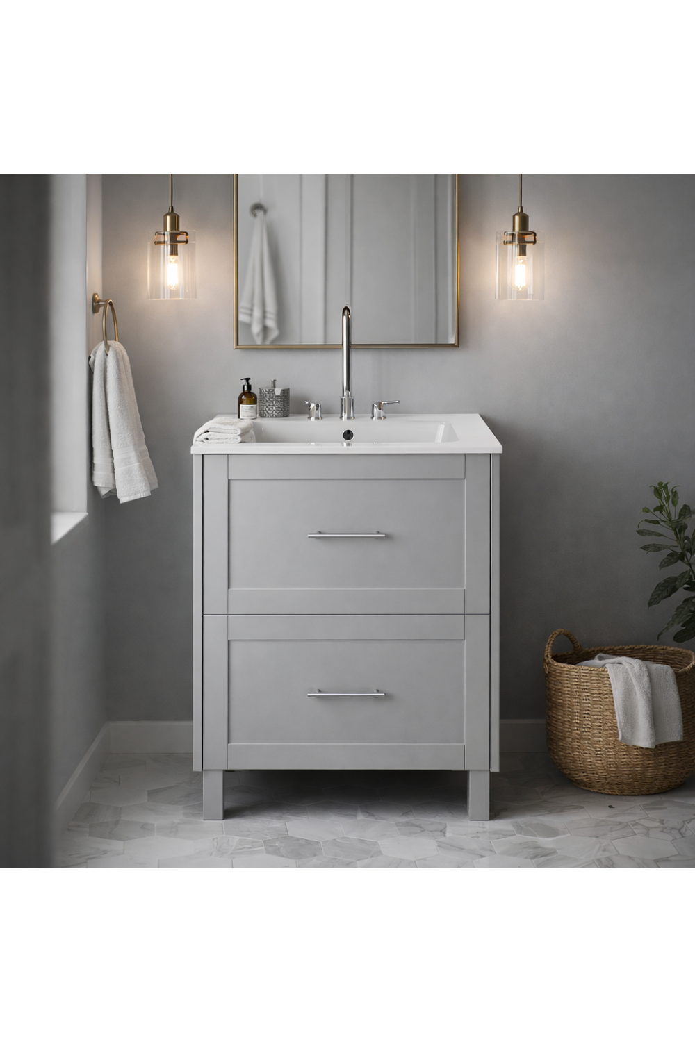 Luxury Freestanding Two Drawer Vanity Unit in Dove Grey Finish – 60 CM is crafted to elevate contemporary bathroom spaces with understated sophistication. Designed with clean lines and a structured form, this freestanding two drawer vanity unit features two generously sized drawers that provide seamless storage for daily essentials while maintaining a calm, uncluttered appearance. The soft Dove Grey finish enhances light-filled interiors, offering a timeless aesthetic suited to modern European homes.