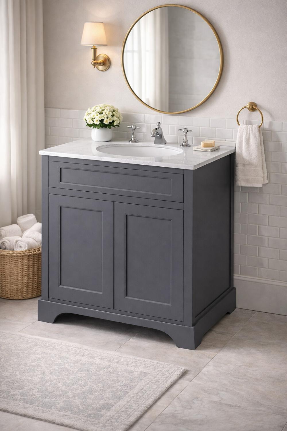 As part of a curated range of luxury bathroom vanities, this 80 CM vanity is ideal for master bathrooms where additional width and storage capacity are essential. Its broader format enhances usability while maintaining visual harmony and architectural presence. For smaller bathrooms or coordinated guest spaces, the Freestanding Graphite Finish Vanity Unit with Single Drawer and Double Door Cabinet – 60 CM offers the same refined design and finish in a more compact size, making it a practical alternative without sacrificing style continuity.