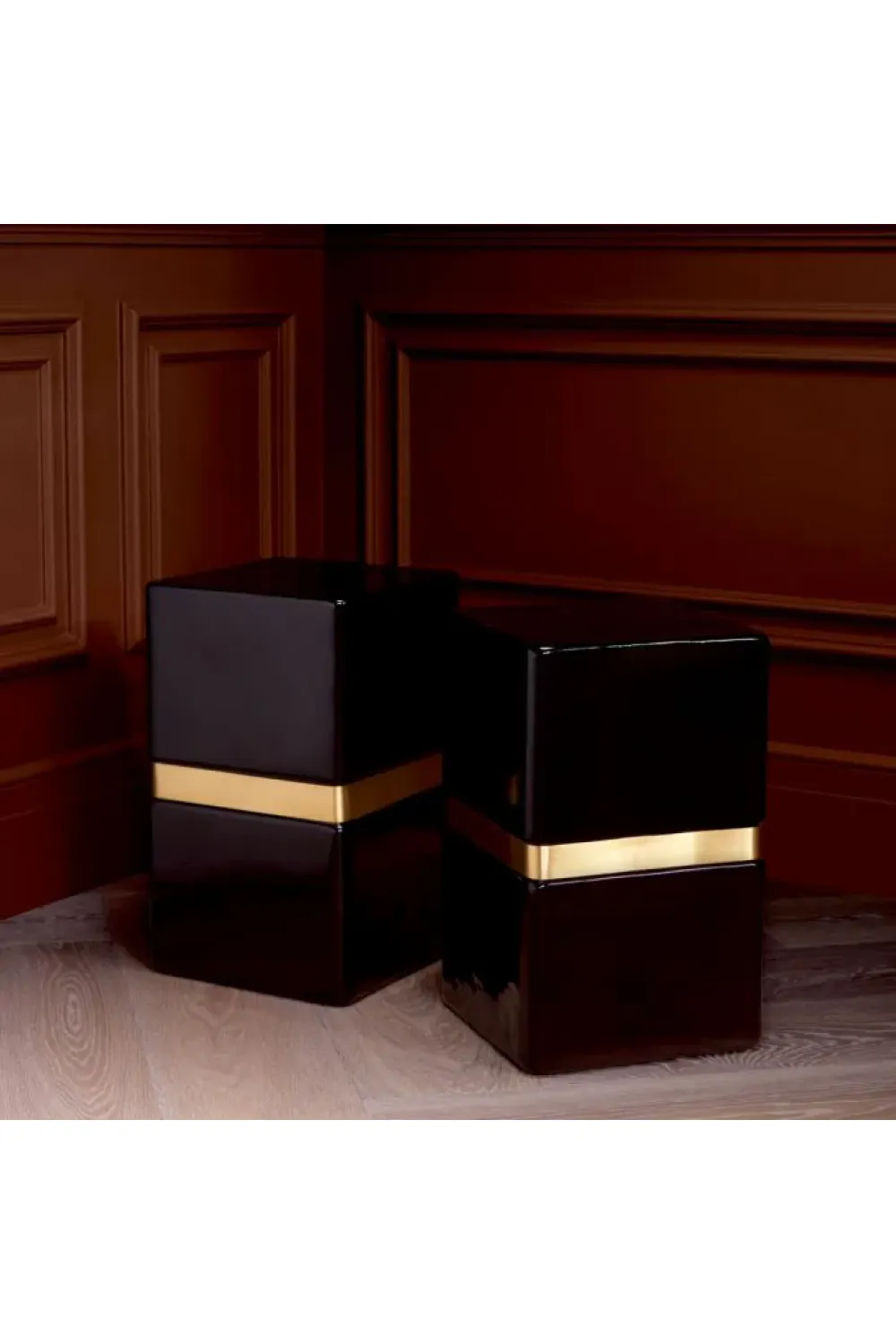 Crafted with meticulous attention to detail, this luxury glass side table black / antique brass is perfect for creating a refined and contemporary atmosphere. Whether placed beside a sofa, armchair, or as an accent piece in your entryway, it offers both style and practicality. The geometric design captures the essence of modern elegance, while the antique brass finish provides a luxurious touch that harmonizes with various interior styles.