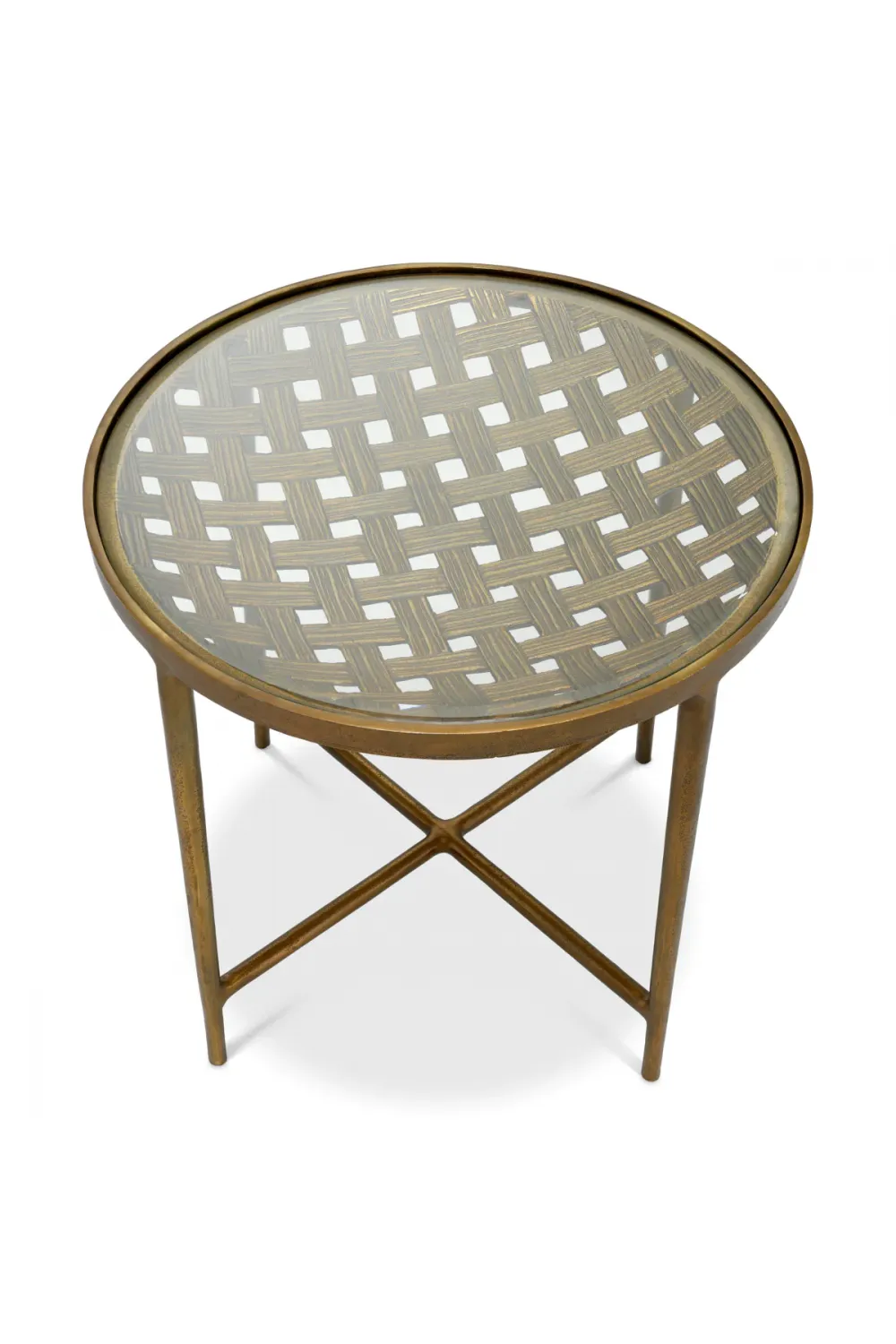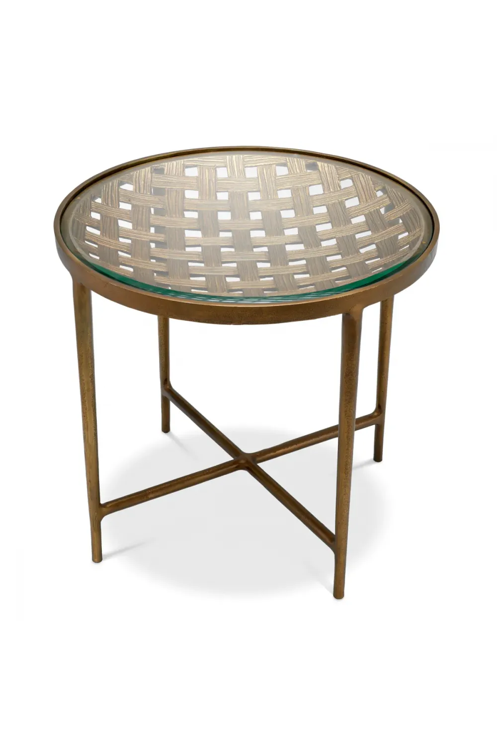 The table showcases a striking bowl shape table table base with an intricate woven pattern table design, crafted in metal to create depth and texture. Finished as an antique brass finish coffee table, the base adds warmth and vintage-inspired elegance. The refined glass top coffee table surface allows light to pass through, highlighting the sculptural metalwork beneath. As a modern side table, it pairs beautifully with contemporary, minimalist, and luxury interiors, while also serving as a stylish luxury bed side table for lamps, books, or decorative accents. Its balanced form makes it a true unique centerpiece in any setting.