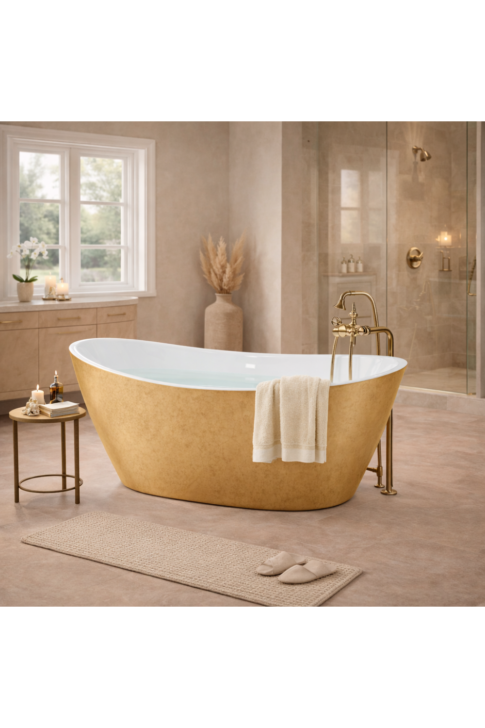 • Radiant gold effect finish bathtub for sophisticated luxury interiors