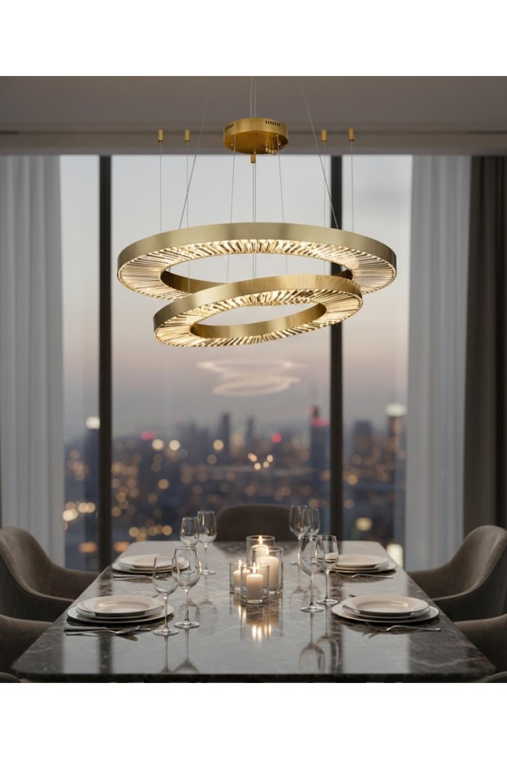 Luxury Gold Finish Pendant-style Dual Ring Chandelier