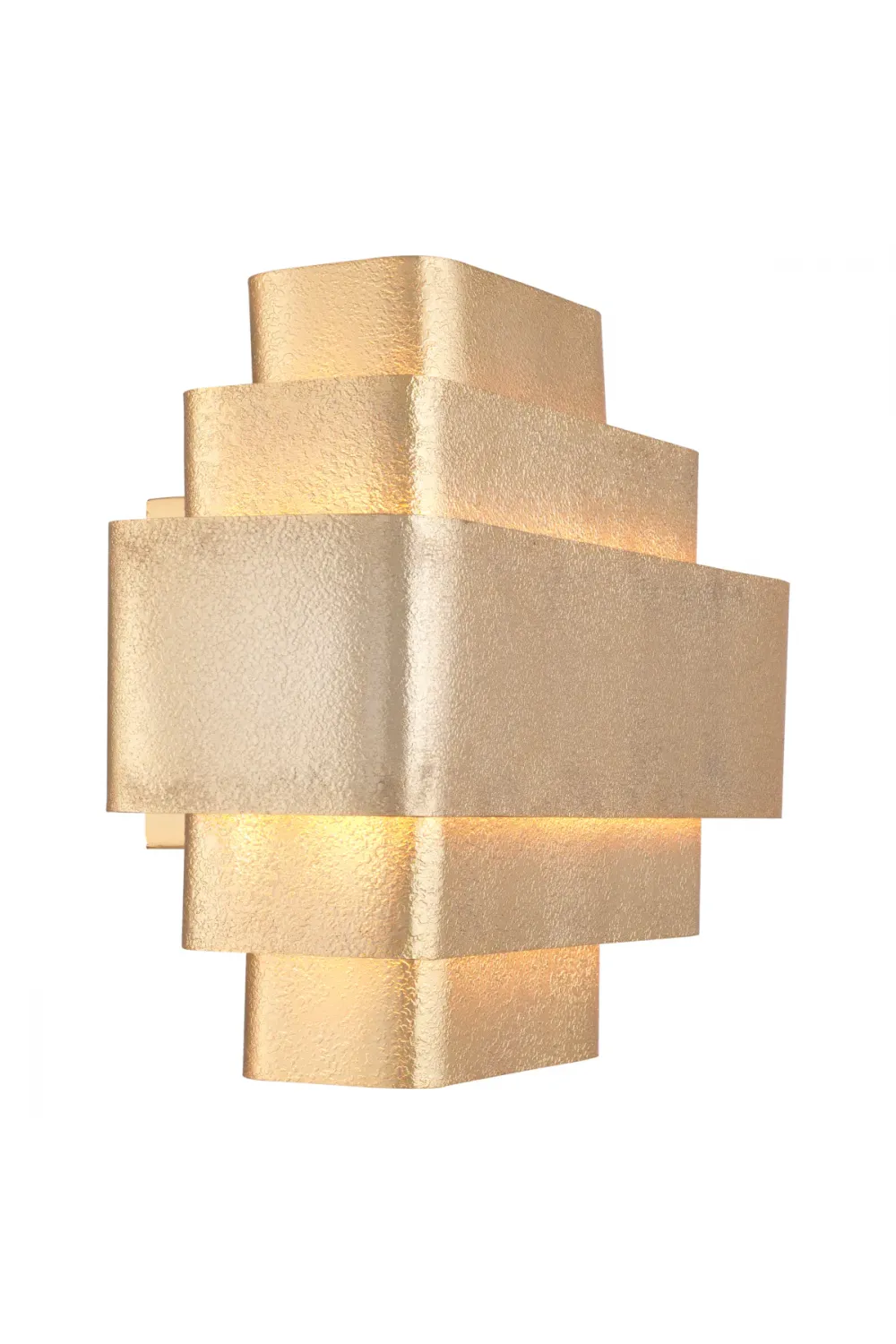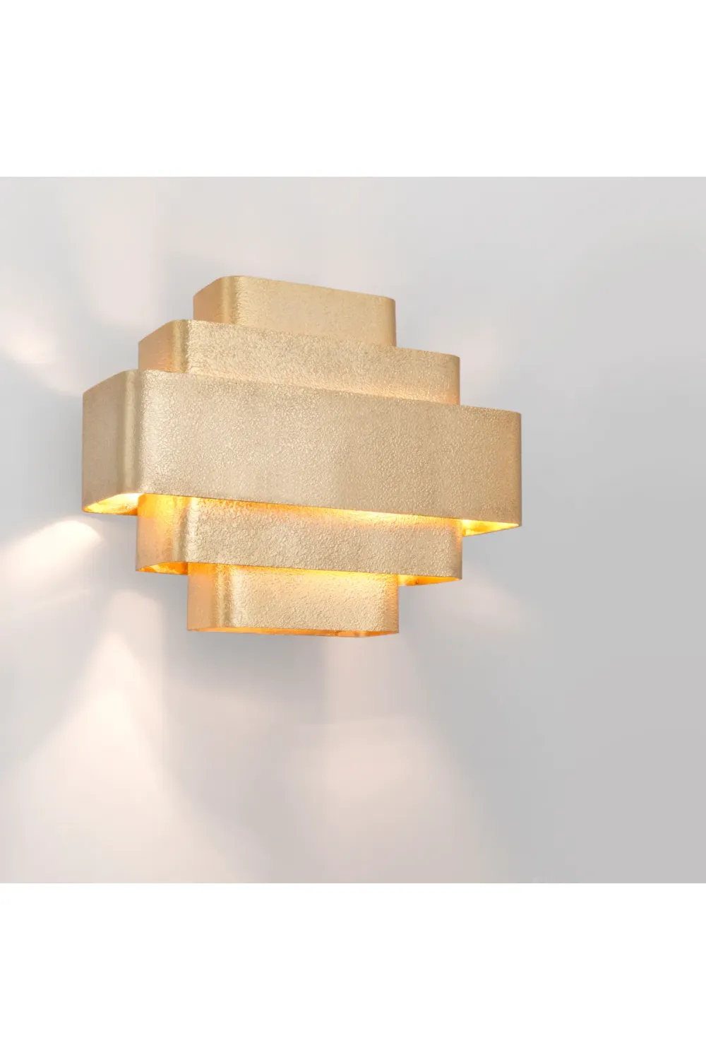 The softly textured gold finish lends depth and richness, catching the light beautifully whether illuminated or at rest. The grainy relief surface adds tactile appeal, while the stepped silhouette introduces visual rhythm that complements both classic and contemporary interiors. As a wall washer light with curved shapes, it distributes light evenly, casting a warm and inviting glow across walls.
