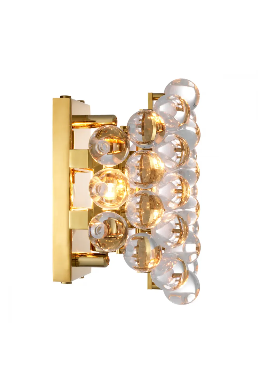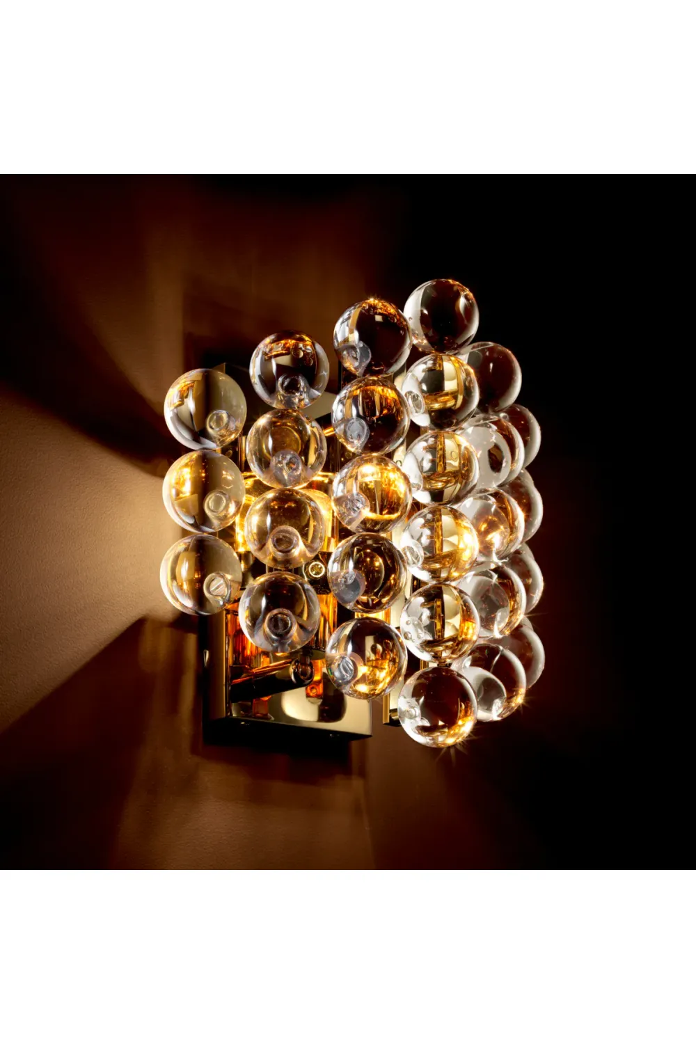 Defined by radiant transparency and refined metalwork, this luxury wall lamp enhances interiors with elegant light diffusion and visual depth. Designed as a wall lamp with spheres of clear glass, it brings warmth, balance, and modern sophistication to luxury living spaces.